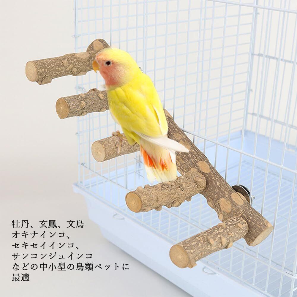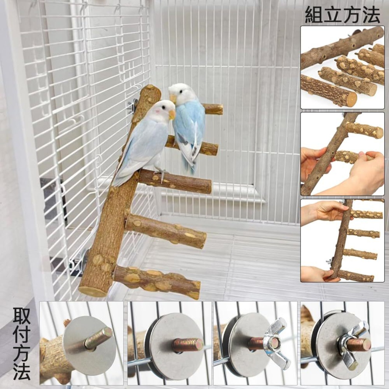 Mikankawa 鳥 インコ とまり木 はしご 5階段タラップ 天然木 鳥のおもちゃ 快速取付 鳥籠アクセサリー