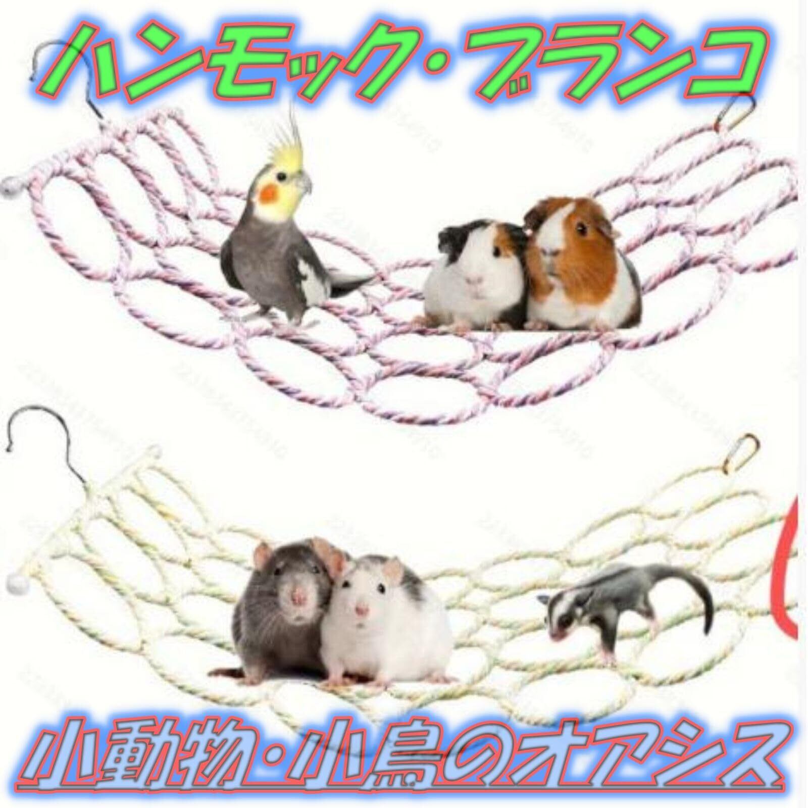 鳥 ハンモック 小鳥 インコ 小動物 用 おもちゃ 吊り下げ 止まり木 2点セット