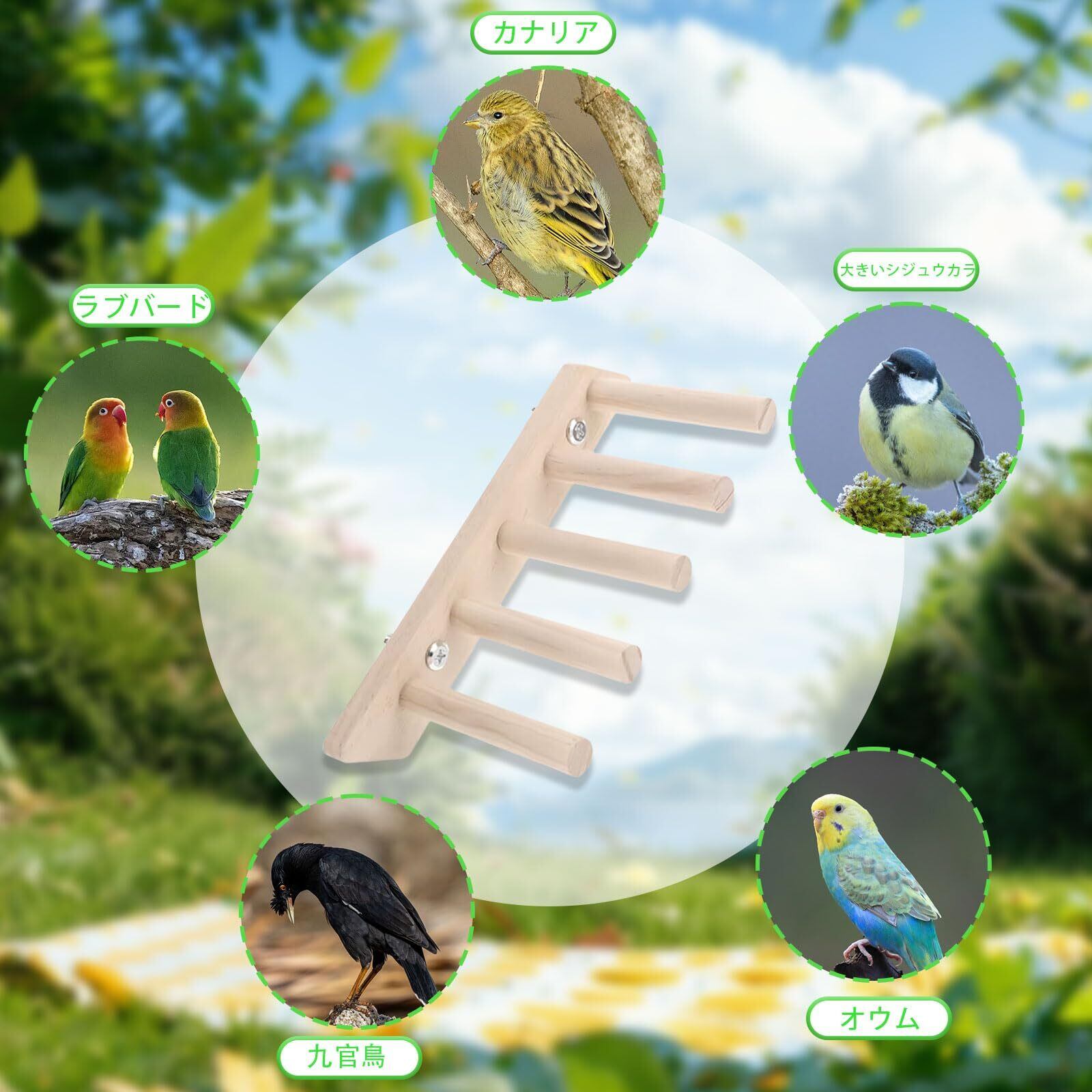【高品質素材】天然木で作られ、色素は含まれておらず、安全で健康的、無毒で鳥に無害です。表面は滑らかで耐久性があり、丈夫で長寿命なので、ペットの健康やおもちゃが噛まれて破損することを心配する必要はありません。ペットに快適な空間を提供します。 【スタンドはしご】止まり木は階段の形をしており、合計5層あり、科学的に設計された間隔で、鳥がジャンプしたり登ったりする訓練をすることができ、効果的にストレスを軽減でき、オウムにとって最適なおもちゃです。 【止まり木のはしご】このはしごを鳥かごに取り付けて、鳥が止まったり、登ったり、運動したり、遊んだり、くちばしや爪を研ぐことができます。ペットが遊んだり運動したりできるスペースを提供します。 【取り付け簡単】鳥止まり木は側面にネジと鉄片があり、ケージに簡単に固定でき、安定性が良く、ひっくり返って鳥が落ちる心配はありません。 【適用対象】オウム、インコ、セキセイインコ、オカメインコ、コザクラインコ、カナリア 、文鳥、牡丹などの種類の鳥に最適です。