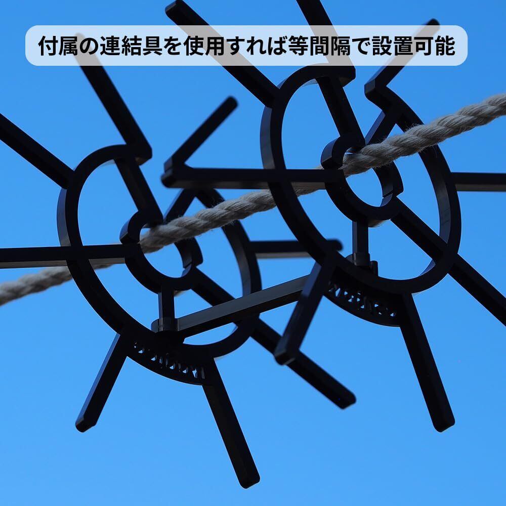 【商品名】 ・クルクル鳥よけクリップ 【商品概要】 ・フェンスの横に車を駐車して毎日鳥害(糞害)に困っていた社員から発案されたアイデア商品です。 【商品特徴】 ・こちらの『クルクル鳥よけクリップ』の特徴は、フェンスやロープに本商品を取り付けることにより、鳥が止まりにくくなり、また本商品に鳥が止まった際には『くるっと』回転することにより、鳥が止まれなくなります。 取り付ける事が出来るロープやフェンスは、直径3mm~12mmに適合しております。 ・本商品は回転するため、取り付けたロープ等から上下に70mm以上の回転する隙間が必要になります。 ・付属の連結具を使用することにより、ロープ等に取りつけた際には等間隔で設置することが可能です。 【商品仕様】 ・生産国:日本 ・パッケージ入り数:本体10個/連結具10個 ・サイズ:本体外径120mm厚み3.5mm/連結具55mm×8mm厚み3.5mm ・重さ:本体約9g/連結具約1g(各1個当たり) ・材質:本体POM樹脂(再生材)/連結具PON樹脂(再生材) ・直径3mm~12mmまでのフェンスやロープに対応 【使用上の注意事項】 ・取り付けの際にはケガを防ぐため、手袋を使用してください。 ・規定以外のフェンスやロープに取り付けようとする場合、製品の落下や破損が発生し、思わぬ怪我をする恐れがあります。 ・検証を行って商品化をしておりますが、防風や豪雨など悪天候の際など、製品が外れる可能性がありますので、取り付けの場所はご注意ください。 ・使用想定年数を1年としておりますが、取り付ける場所の環境によっては、ご使用出来る期間が長くなる場合、短くなる場合があります。 ・思わぬ事故やケガの危険がありますので、小さなお子さまの手が触れない場所にてご使用、保管してください。 ・ヒビ割れやカケなど破損が発生した場合は使用をおやめください。 ・誤った使用方法や自然災害、外的要因での起因した損害は補償外とさせて頂きます。