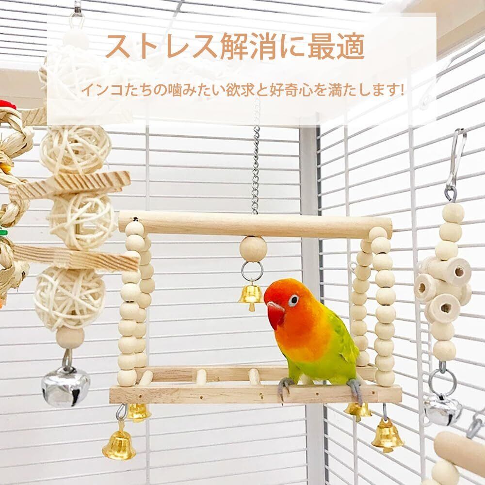 【2022最新】YFFSFDC バードトイ 鳥の遊び場 原木 吊り下げ 鈴 ブランコ オウム おもちゃ 噛む玩具 鳥グッズ インコおもちゃ ストレス解消 ベル (8点セット B) | wakuwakuland