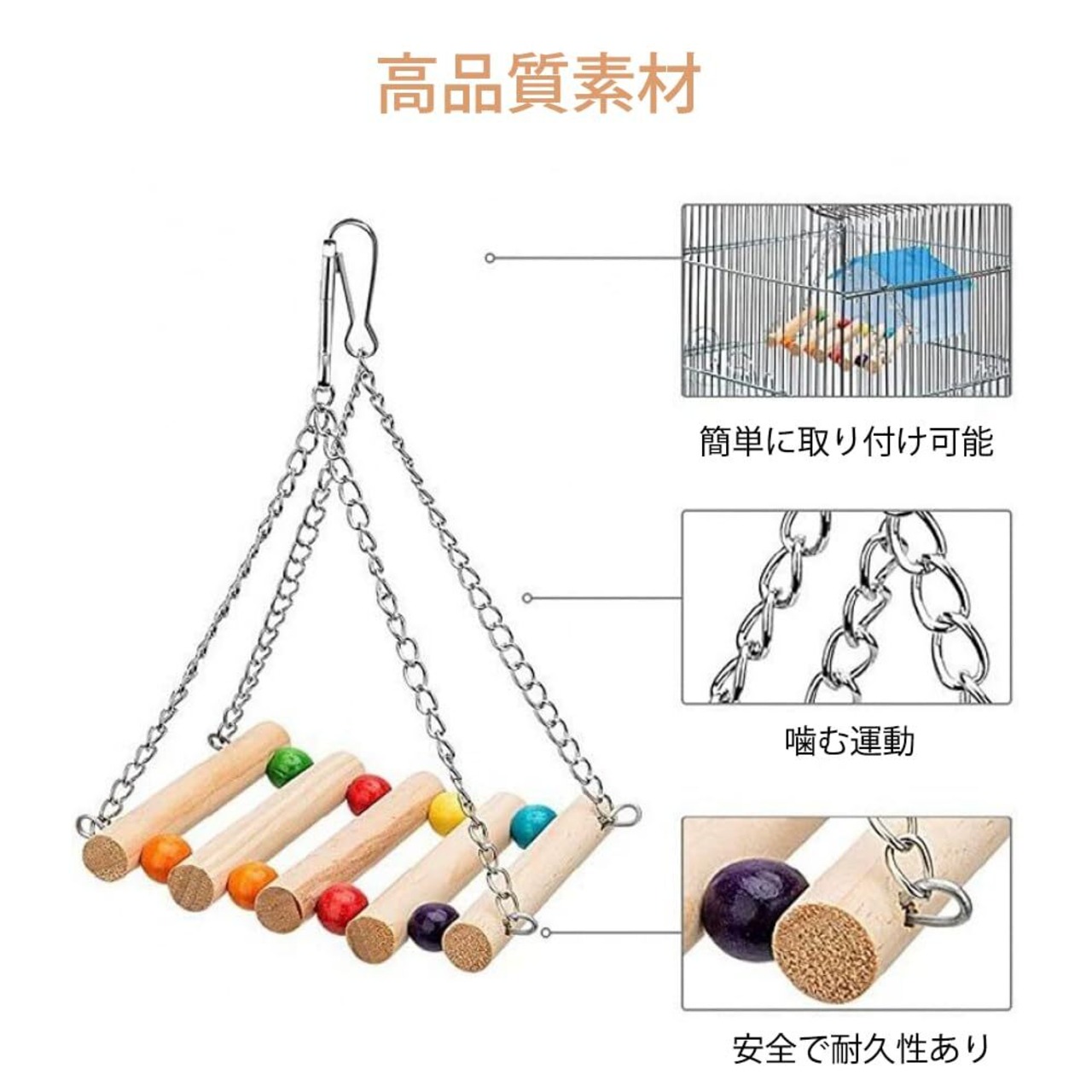 【素材】安全で環境にやさしい天然木素材を採用、健康無害、オウムは遊ぶために安心できます。鉄製ハードウェアを採用し、耐久性と安全性を兼ね備えています。