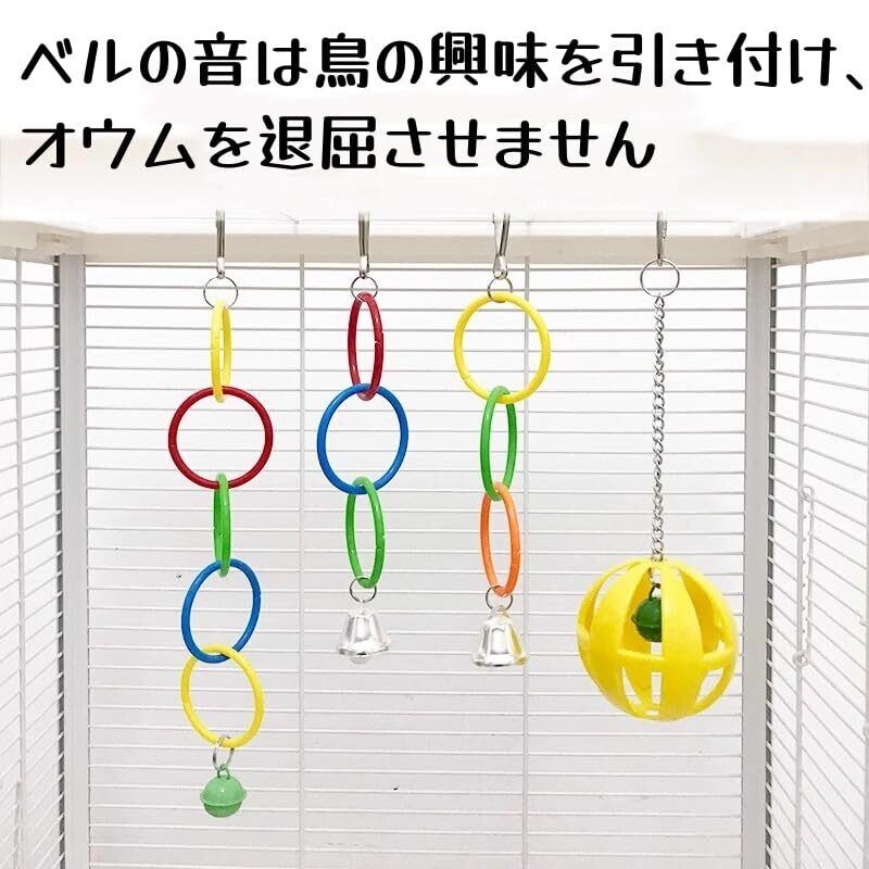 賢いデザイン:クリアな音のベルは、ペットの鳥に甘いを与え、チェーンを引っ張る遊びを楽しませてくれます。ベルの音は鳥の興味を引き付け、オウムを退屈させません。