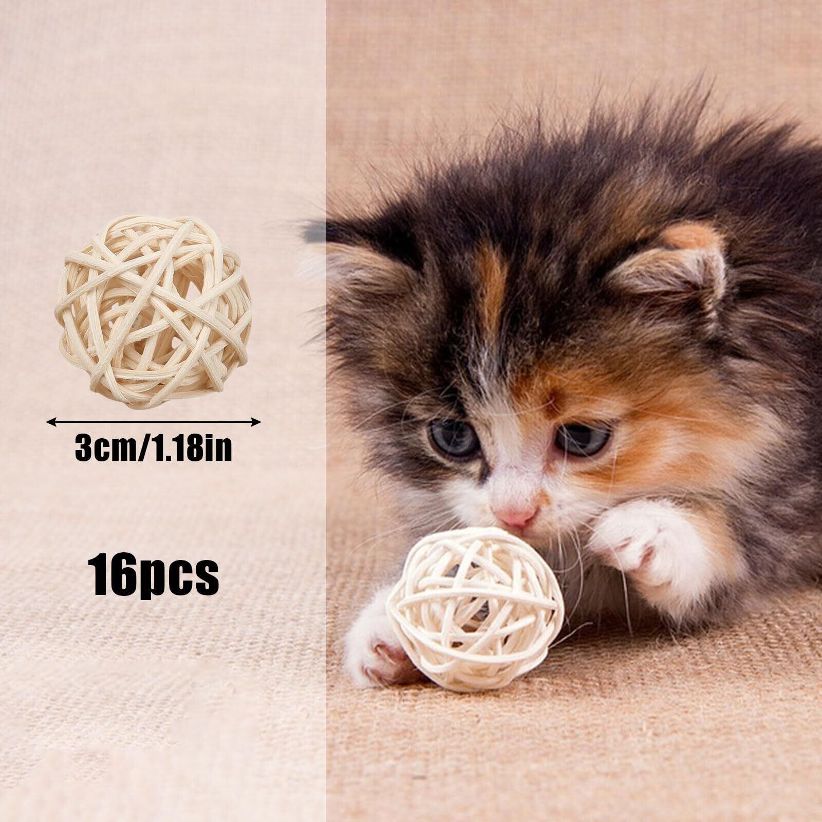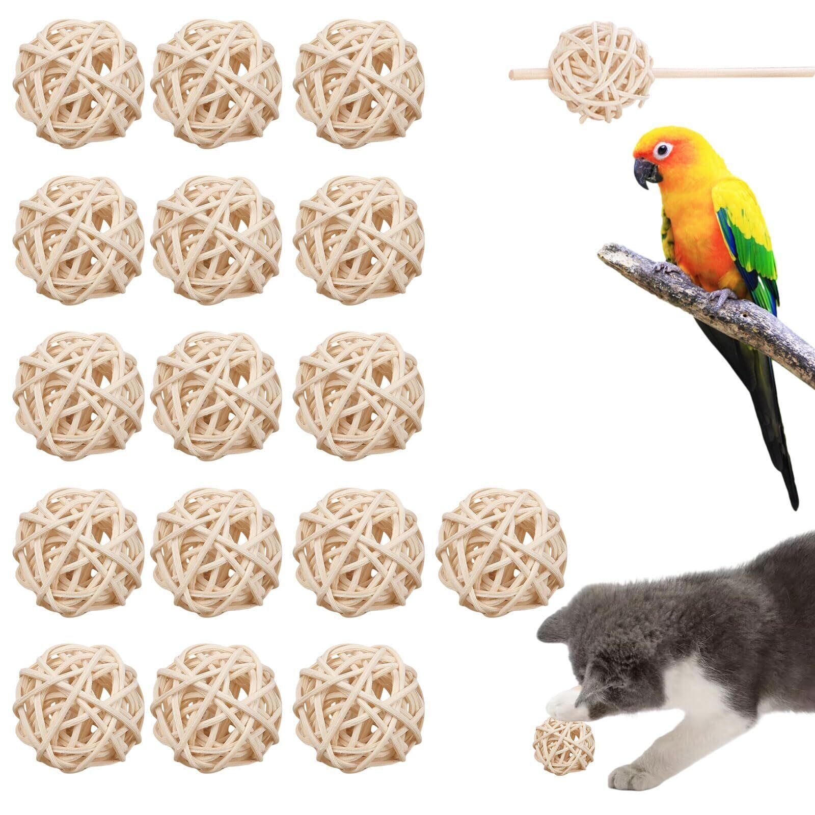 マンチボール 16個セット 3cm インコ おもちゃ ボール 籐ボール ナチュラルカラー ミニ ボール セキセイインコ オウム 鳥 ハムスター 犬用 猫 噛むおもちゃ ペット用 小動物 玩具