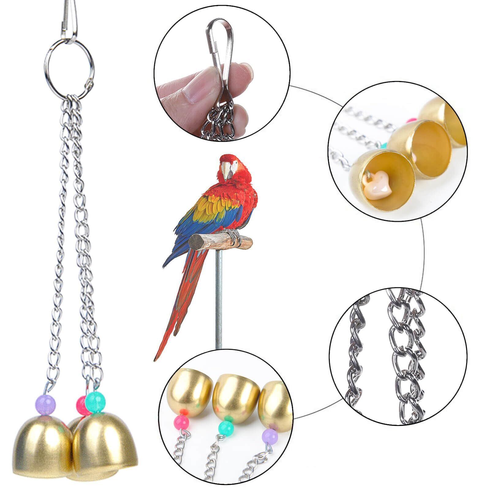 ペット おもちゃ 鳥用 ベル インコ 鈴 吊り下げ 2個入り 23cm おもしろい ゴールド 音が鳴る 遊ぶ バードトイ オウム 鳥 セキセイインコ 鳥 小動物用 おもちゃ ビーズの色がランダム