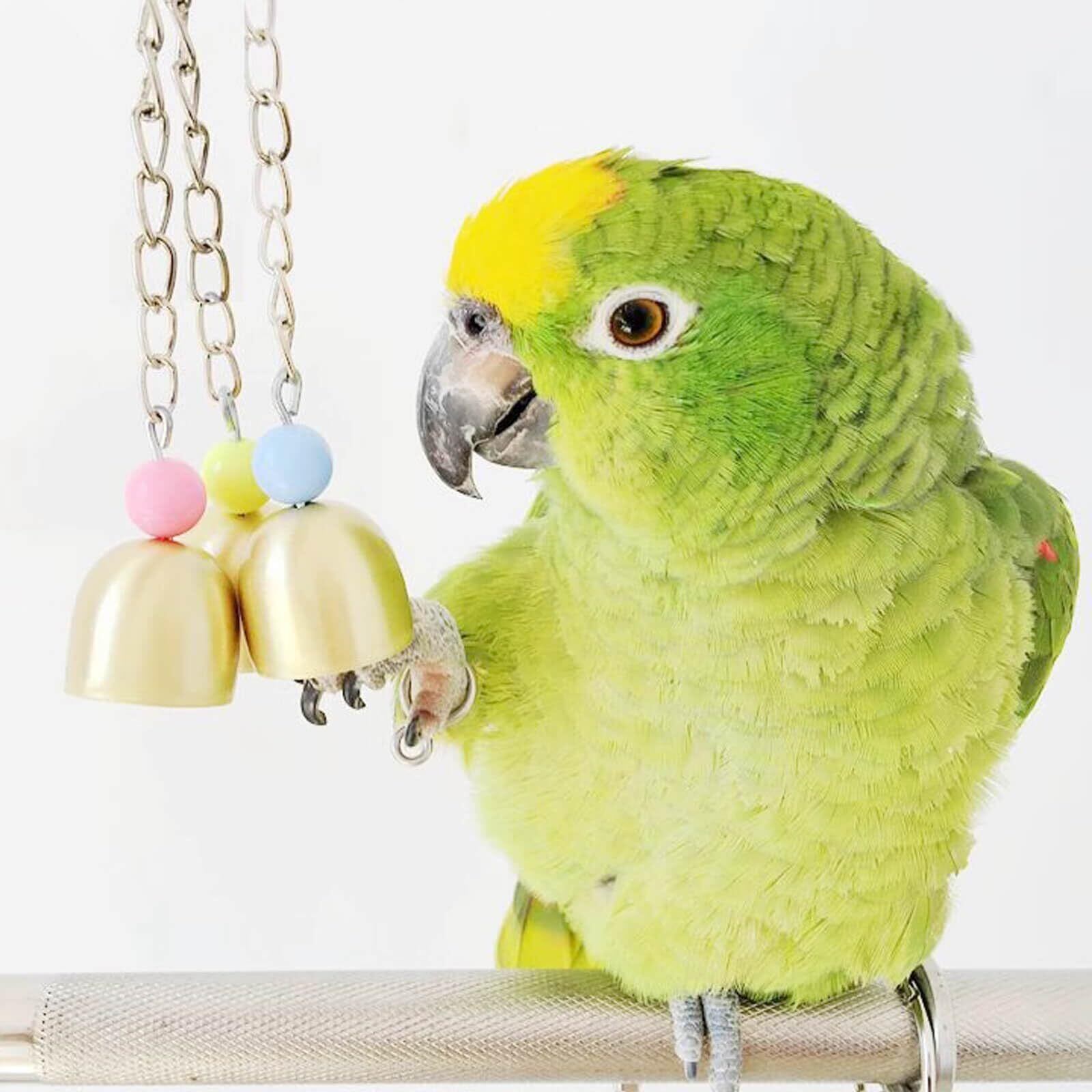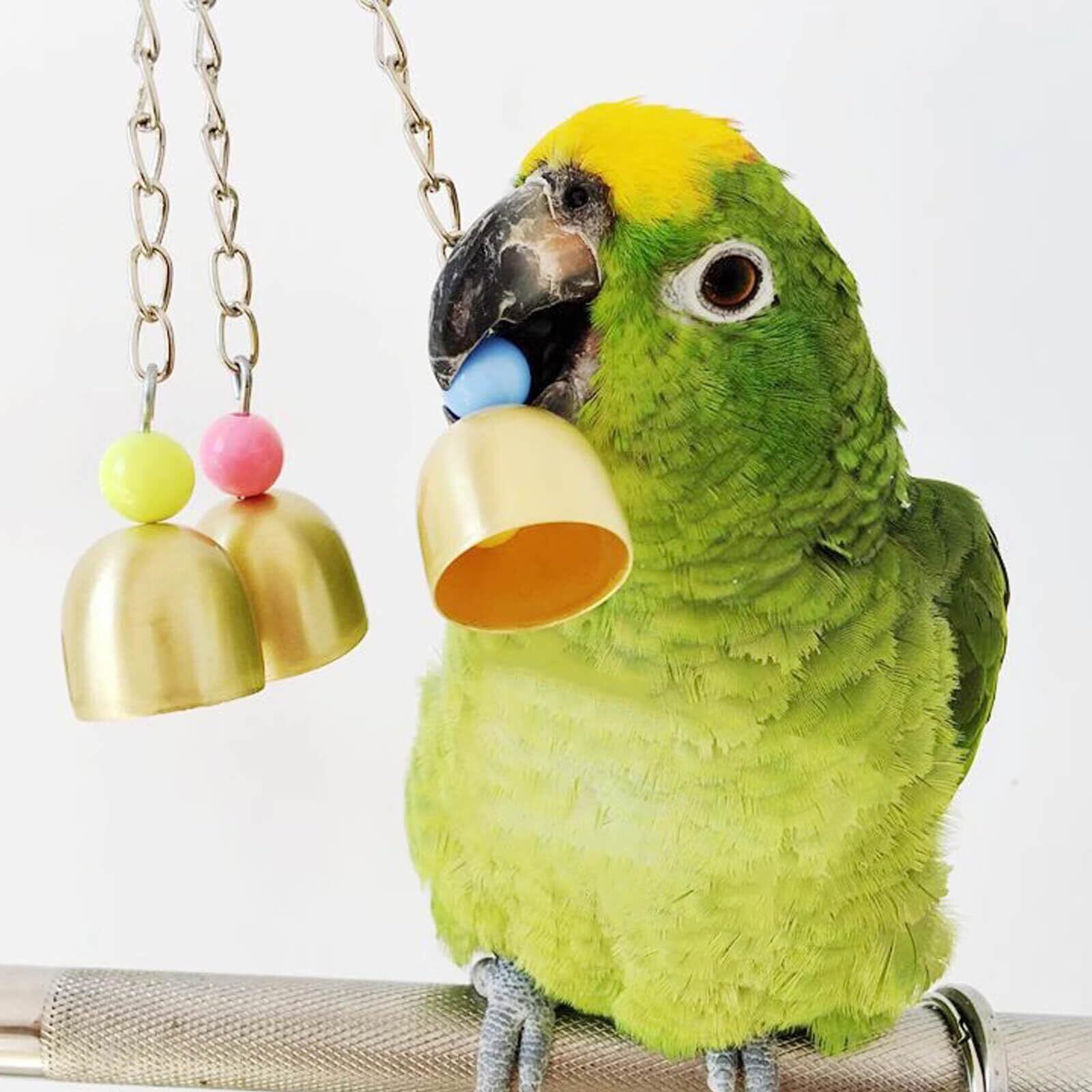 【三つの鈴】鈴の音、三つのベルがぶつかる音が響き、聞く耳に心地よいです。色鮮やかで見た目が可愛いので、簡単に鳥の注意を引き付け、ペット一人でも楽しく遊びます。