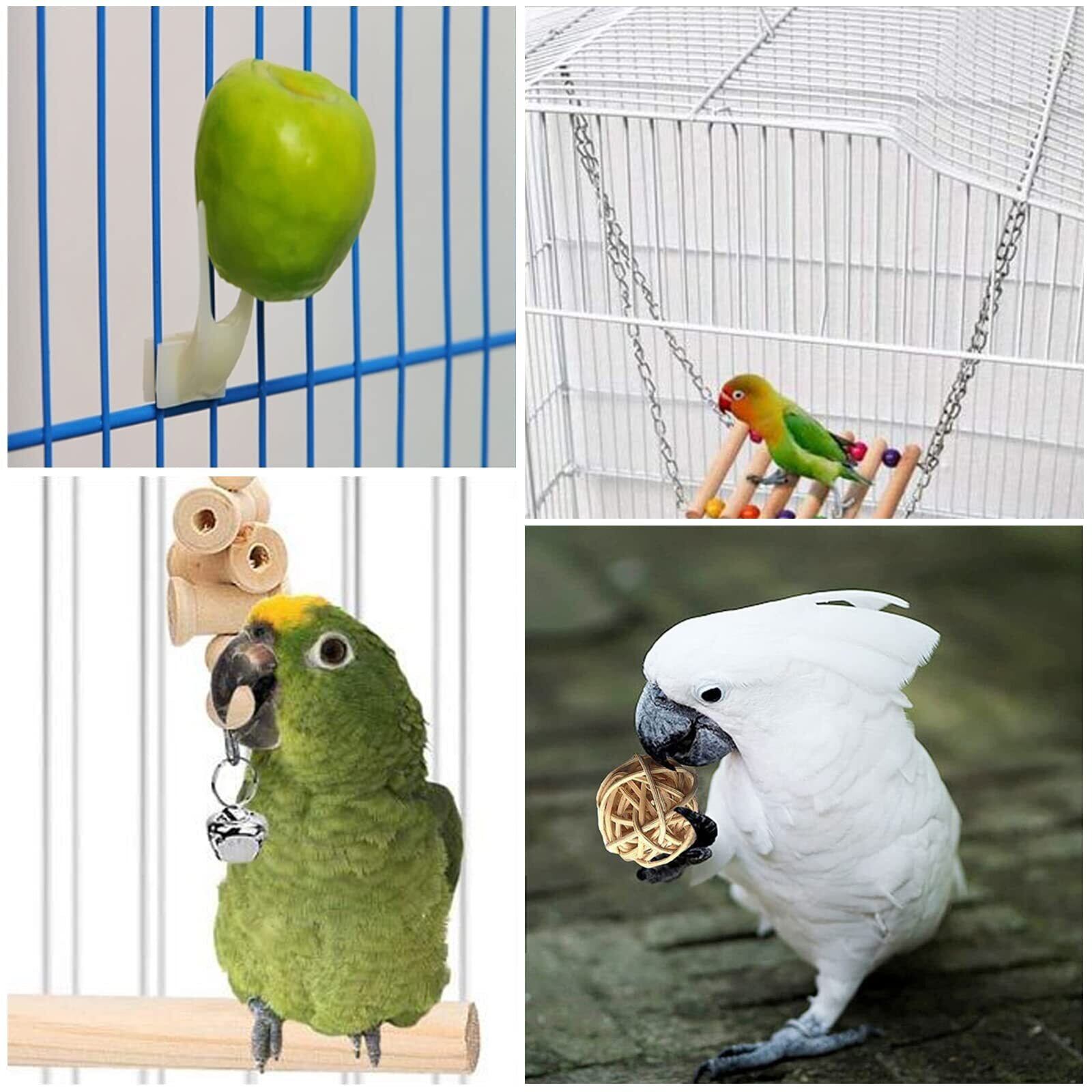 バードトイ 18点セット 鳥のおもちゃ インコ おもちゃ 噛む玩具 組み合わせ 吊り下げ 天然原木 遊び場 ス トレス解消 藤製 鈴付きのスイング ハンモック タラップ橋 回転梯子 咀嚼玩具 果物、野菜のフォーク オカメインコ セキセイインコ オウム 小鳥 (18点セット)