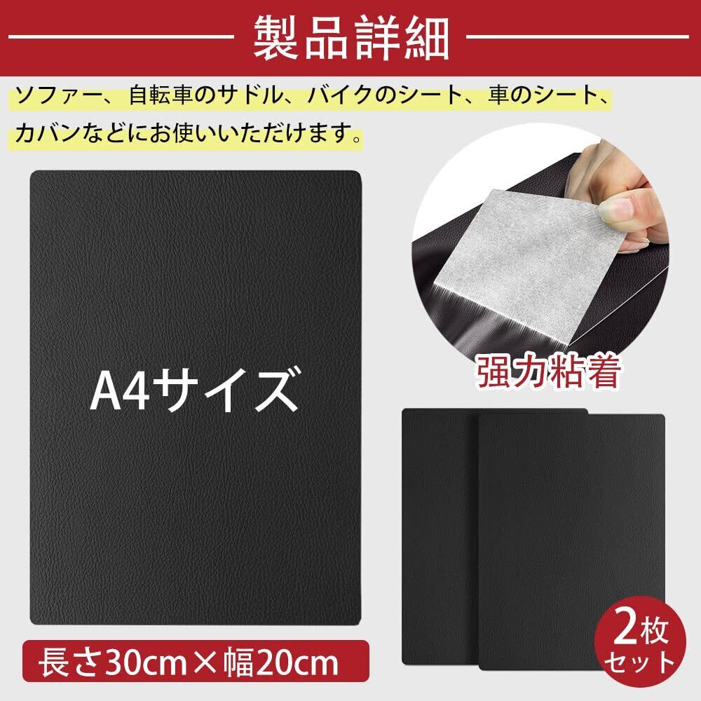 合皮補修シート20*30cm ソファー補修テープシールタイプ カバン 椅子 バイク シート財布家具革補修(2個セットA4サイズブラック)