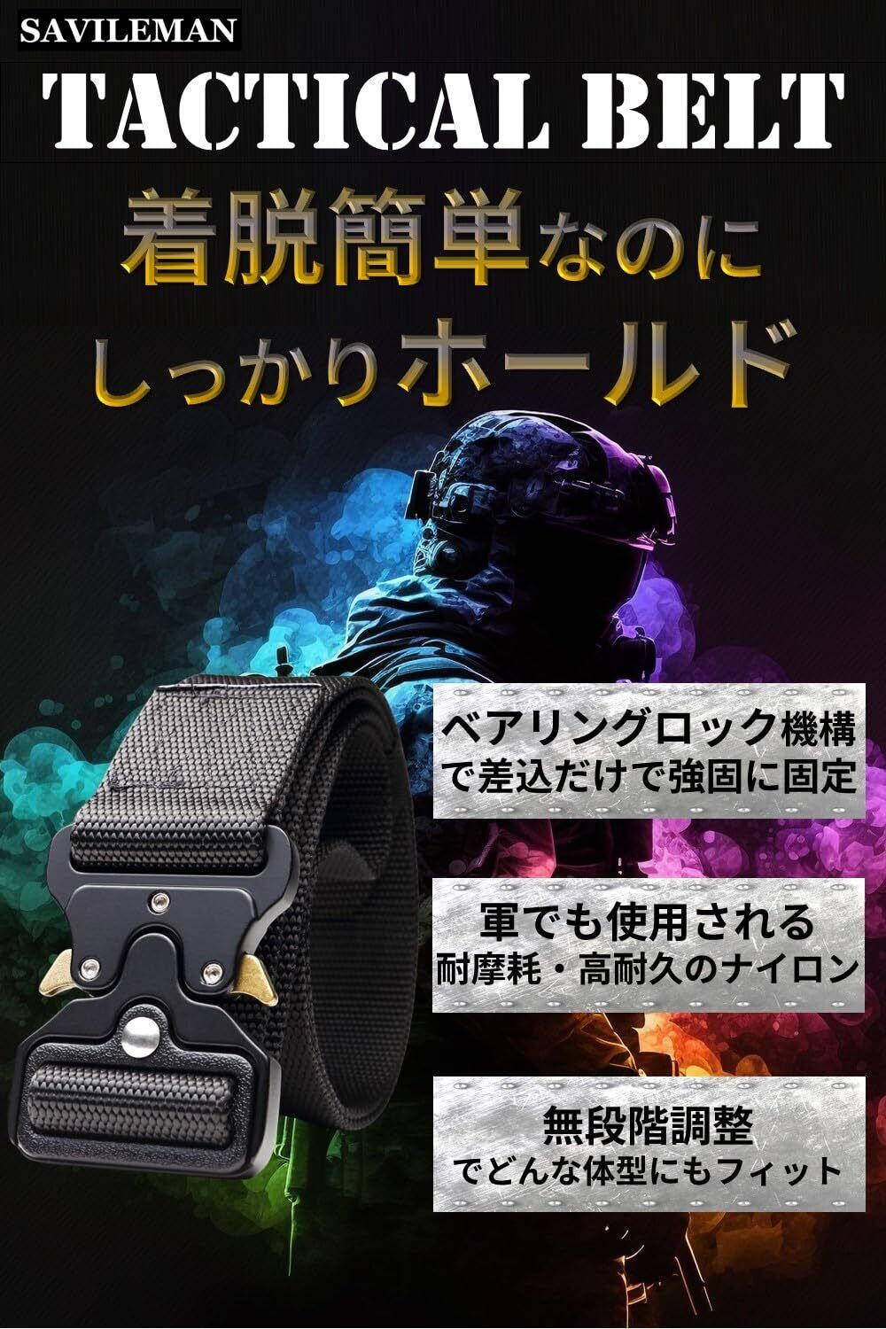 [サヴィルマン] ベルト メンズ タクティカルベルト サバゲー ミリタリー ワンタッチバックル ナイロン 米軍 ホルスター ポーチ 装備 作業用 サバイバルゲーム アウトドア DIY