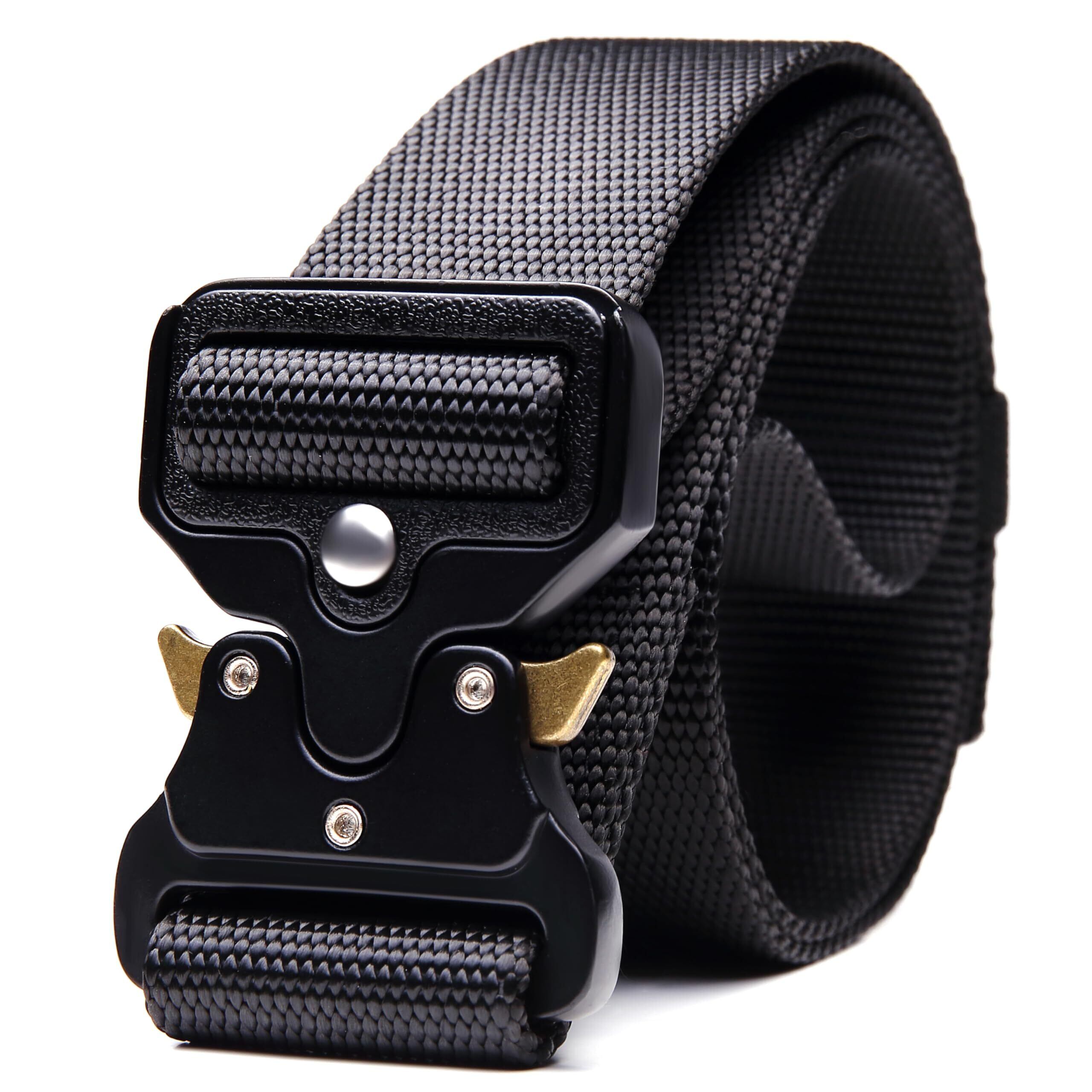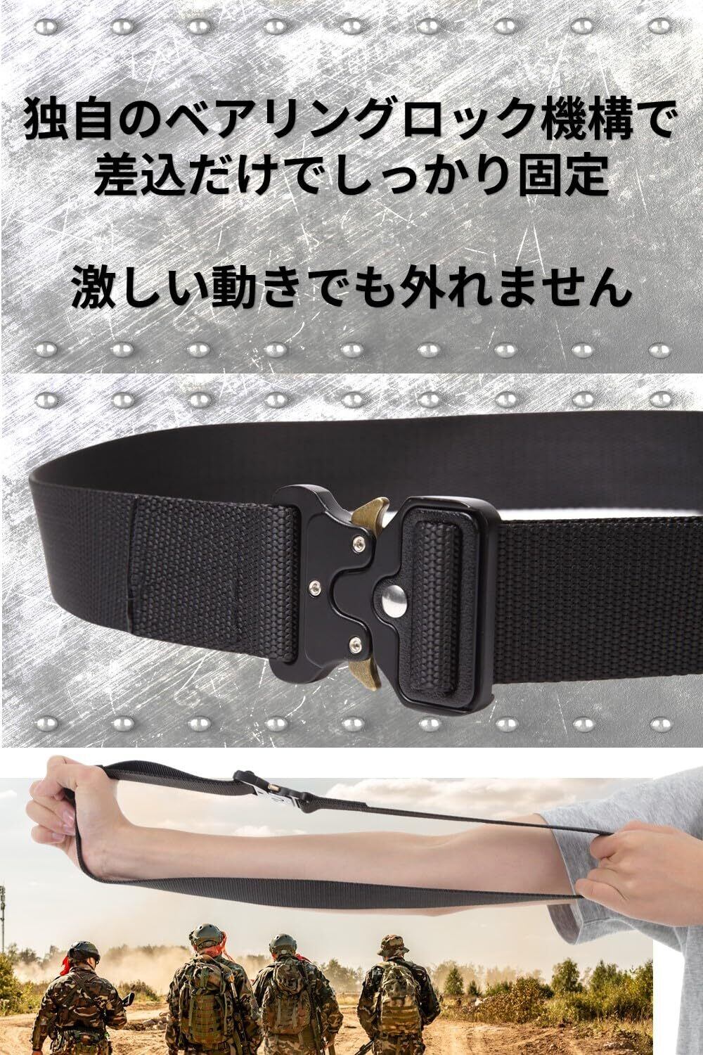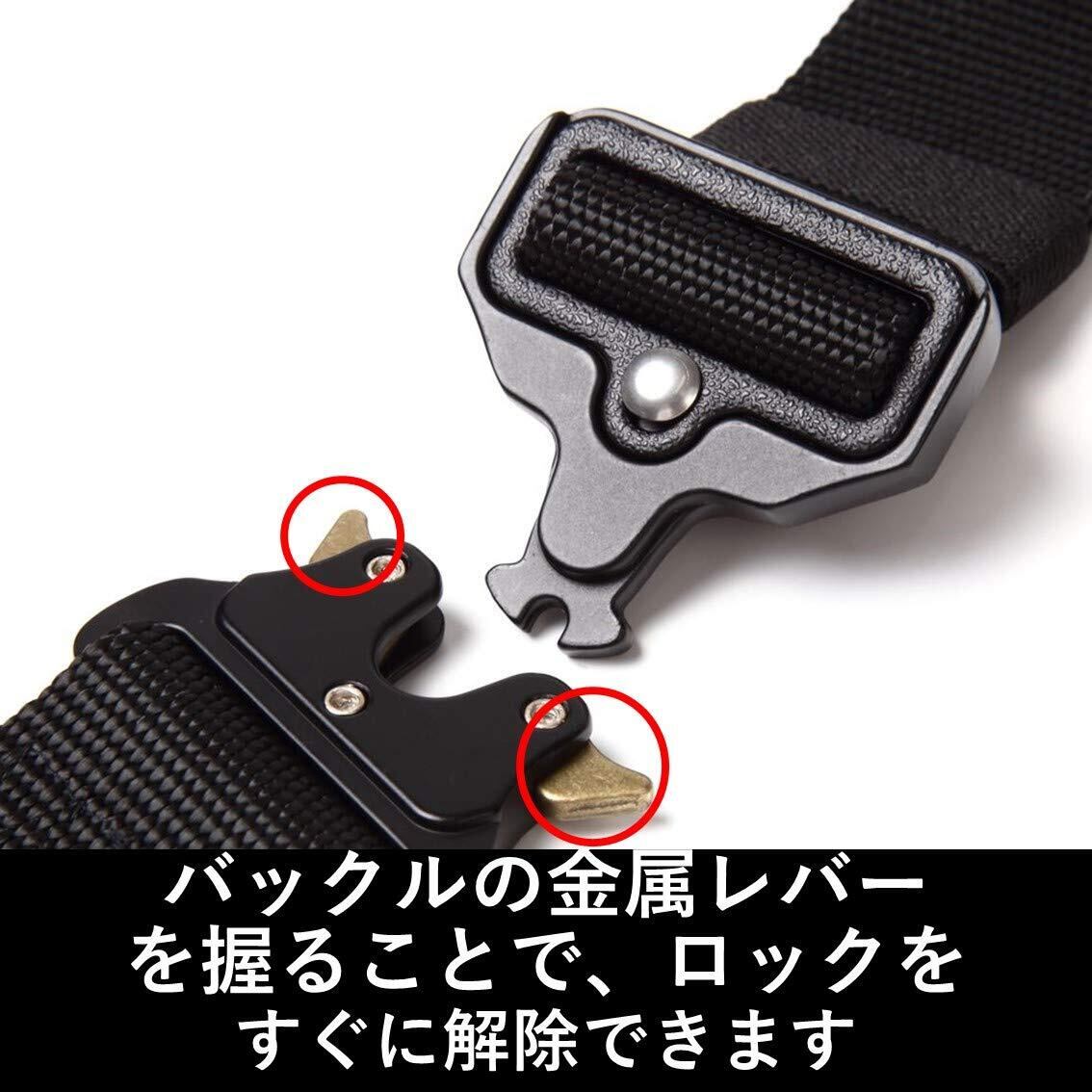ワンタッチ で強固にロック、 ワンタッチ で即座に解除できる タクティカル ベルト です ウエストサイズ 45cmから120cmまで対応