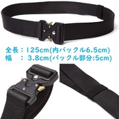 サイズ:全長125cm (内バックル6.5cm) 幅 3.8cm (バックル部分 5cm) 重量 215g *厚さ制限のためテープを巻いて梱包する場合がございます、予めご了承下さい。
