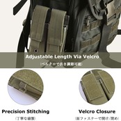 【モールシステム】背面にモールストラップ付、モールリュック、チェストリング、ベルト、レッグパネルなどのタクティカル装備に取り付けることができます