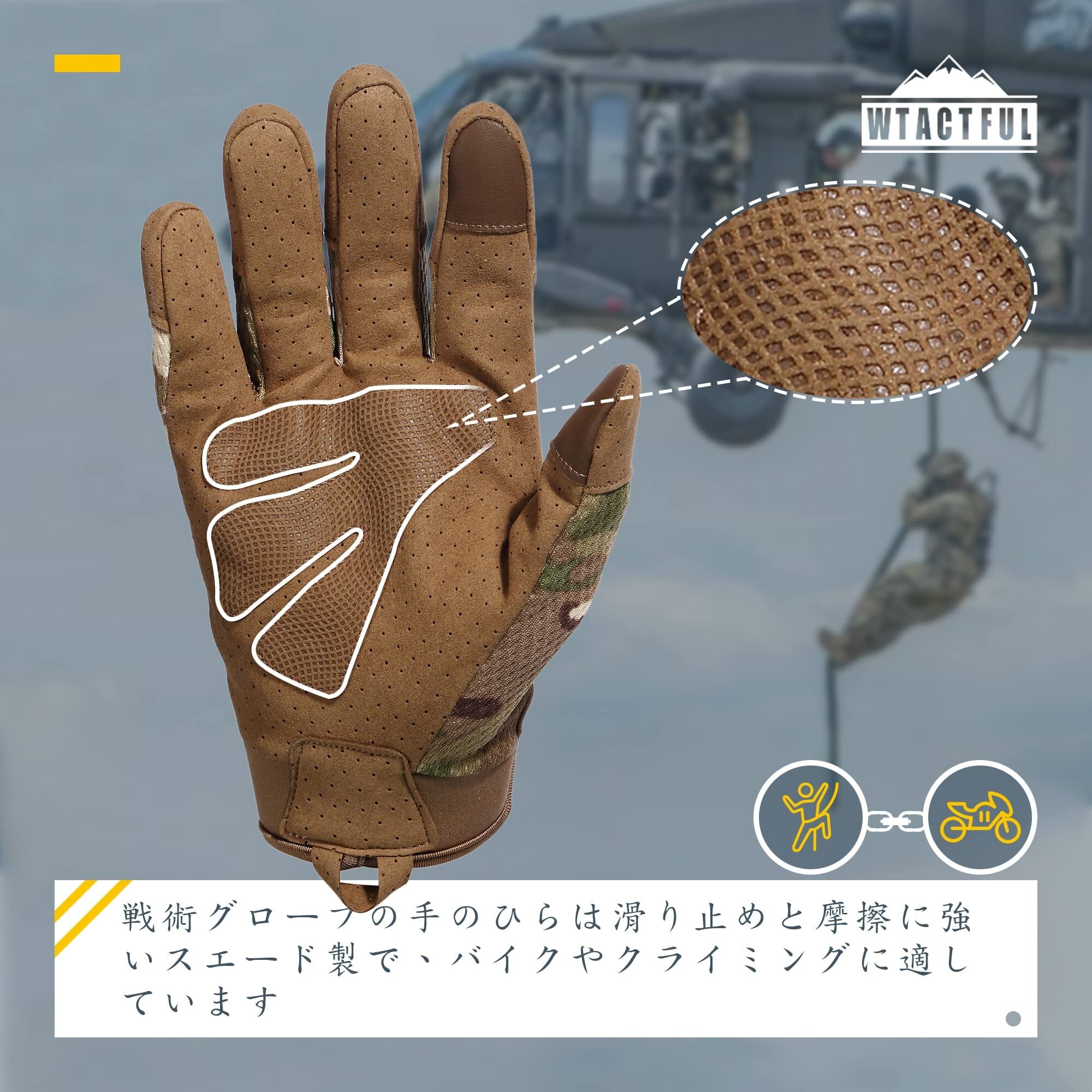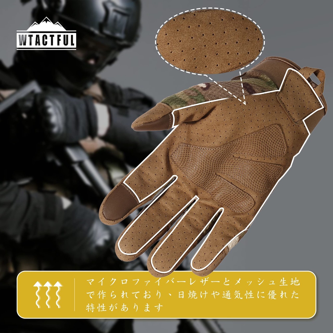 WTACTFUL タクティカルグローブ カモフラージュグローブ 迷彩 戦術軍のオートバイゴムハードナックル フルフィンガーグローブ スマホ対応タッチスクリーンアウトドアスポーツ、軍ファン用 釣り手袋、バイク、ドライブ、射撃手袋、自転車、登山、ペイントボール手袋、ハイキング、通勤、キャンプ、レジャー、写真撮影、狩り、旅行、機械加工、製材、重工など様々な用途に合わせ