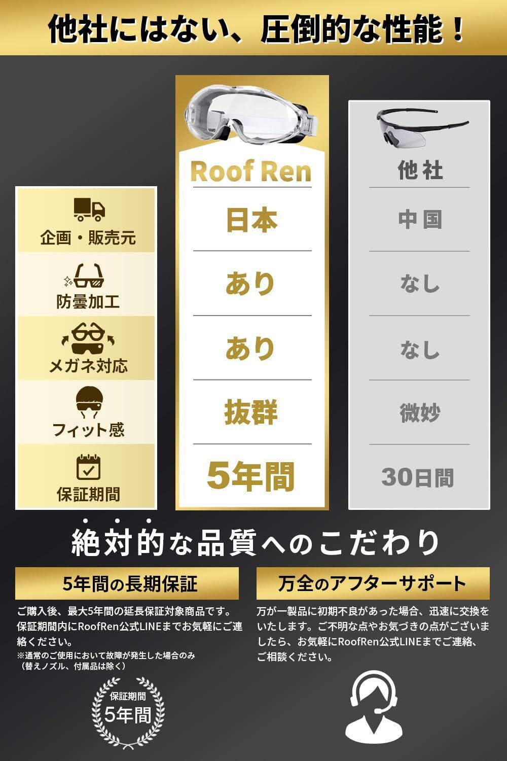 【5年保証】本製品には、ご購入日から最長5年間のメーカー保証(※交換対応のみ)が付帯しています。取扱説明書どおりの通常使用にもかかわらず発生した初期不良・故障に対し、同等品への無償交換を一度限り承ります。修理対応は行っておりませんのでご了承ください。在庫状況によっては交換までお時間を頂戴する場合や、代替品をご用意できない場合がございます。保証を受ける際は保証書の提示が必須です。保証書の紛失、落下・衝撃・水没など誤った使用による損傷、消耗部品の摩耗・経年劣化は保証対象外となります。また、不正な申請が疑われる場合には、必要に応じて警察など関係機関へ相談させていただくことがあります。RoofRen(ルーフレン)は、お客様に長く安心してご使用いただける製品とアフターサービスをお約束します。