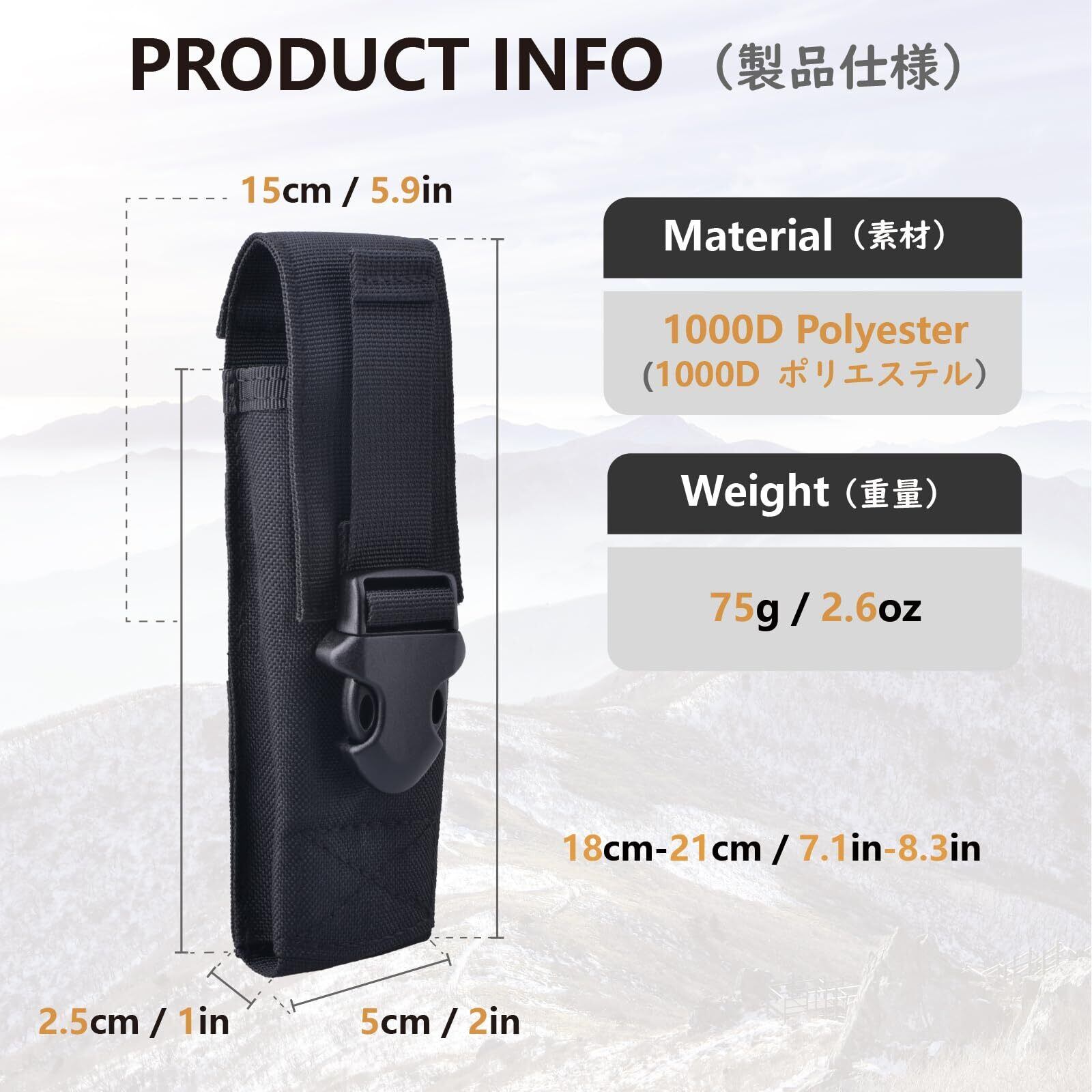 ️【仕様】--懐中電灯用ポーチはナイロン素材を採用しています。防水、耐摩耗性、防尘性、清洁性に優れています