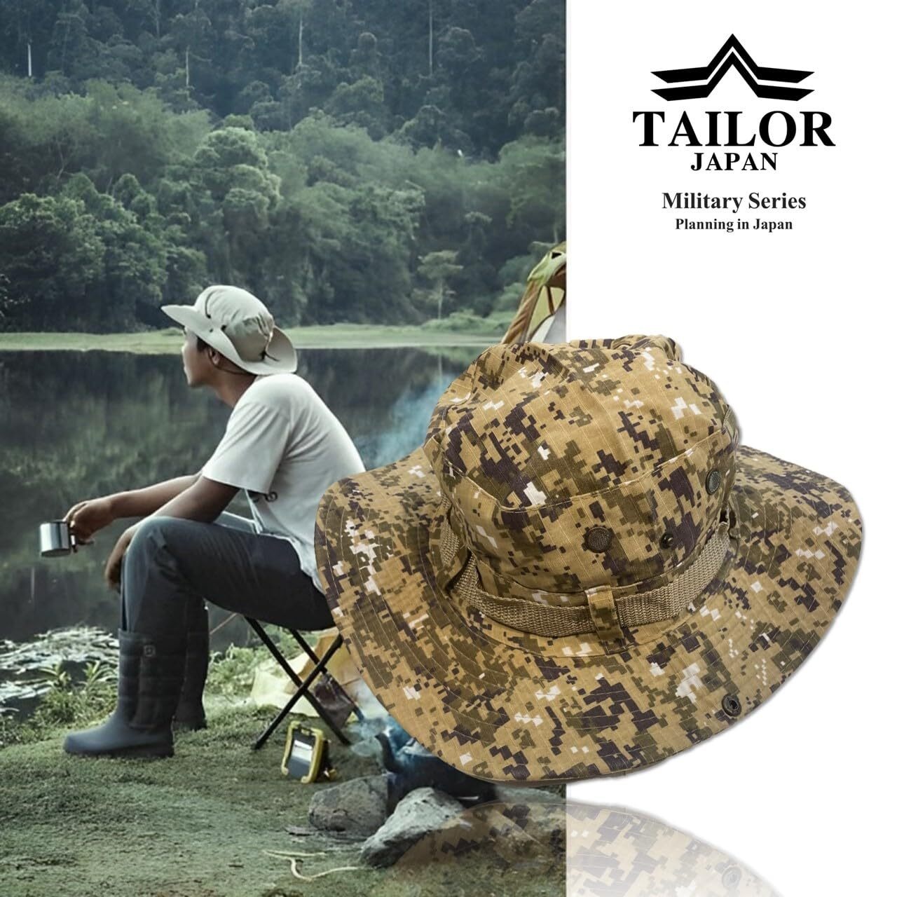 [TAILOR JAPAN] 深め サファリハット ブーニーハット 大きいサイズ キャンプハット ジャングルハット 迷彩 マルチカム カモフラージュ 帽子 軍服 ミリタリー フリーサイズ (デザート迷彩)