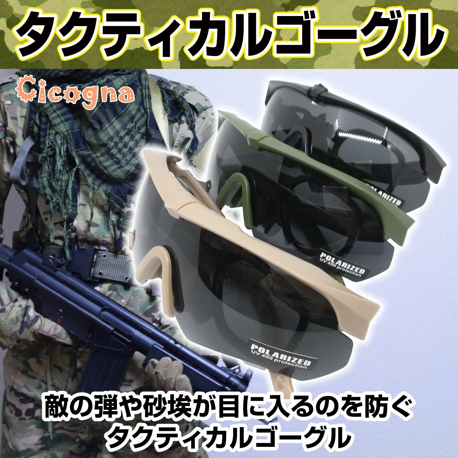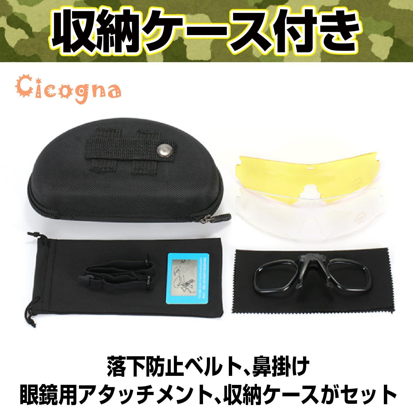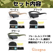 [Cicogna] タクティカルゴーグル サバゲー用 シューティンググラス 3色交換レンズ付き サングラス 偏向レンズ メガネ対応 アイセーフティ ウェア 目保護 アイガード (グリーン)