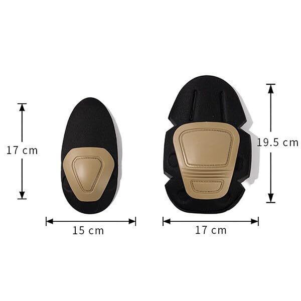 【サイズと重量】 膝:約19.5×17×3cm/肘:約17×15×3cm/重量:約92~106g。さまざまなパンツに対応可能ですが、購入前にポケットサイズをご確認ください。
