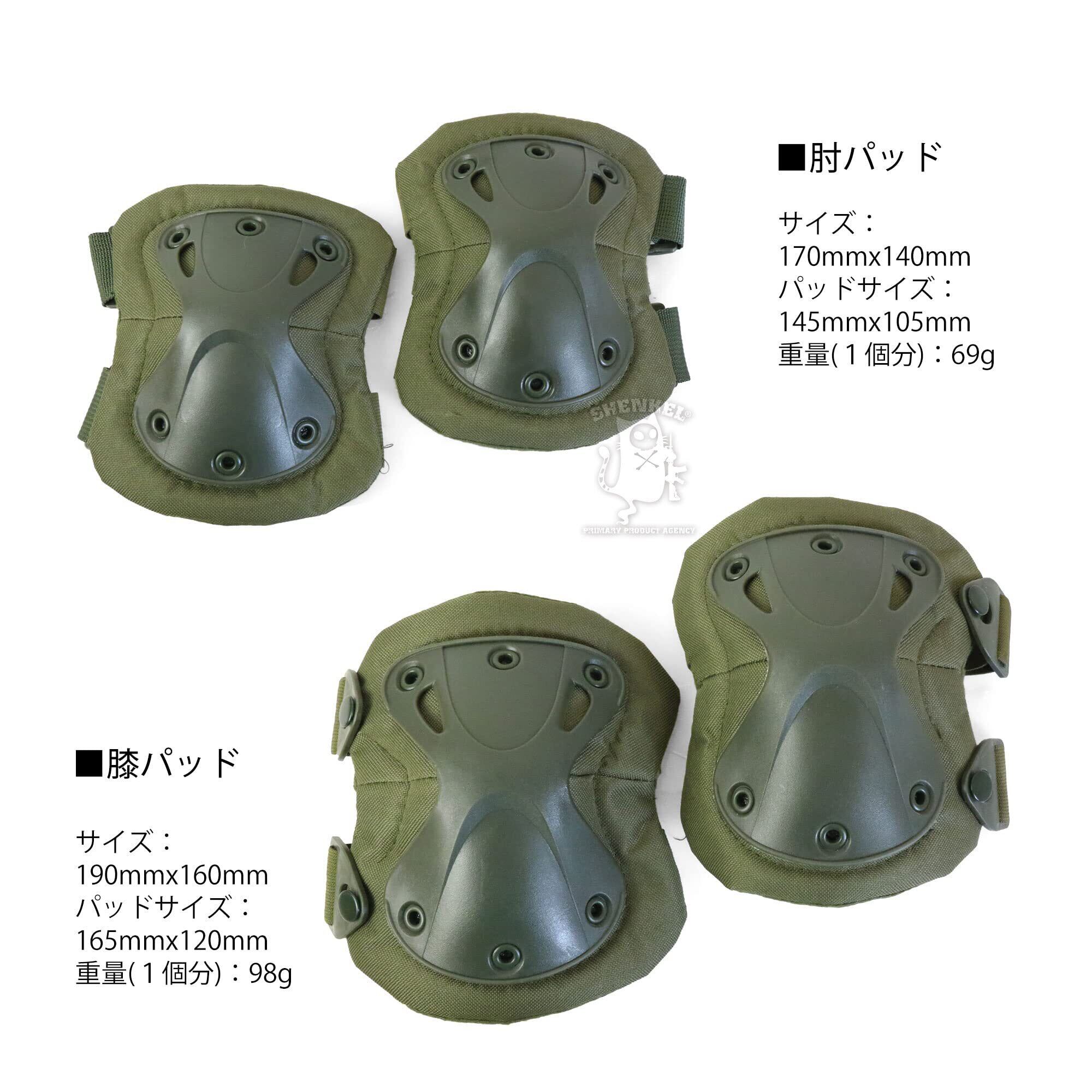 【特価商品】SHENKEL ハッチ XTAKタイプ エルボーパッド 二ーパッド セット OD オリーブドラブ 膝当て 肘当て プロテクター フリーサイズ pad-002od | wakuwakuland