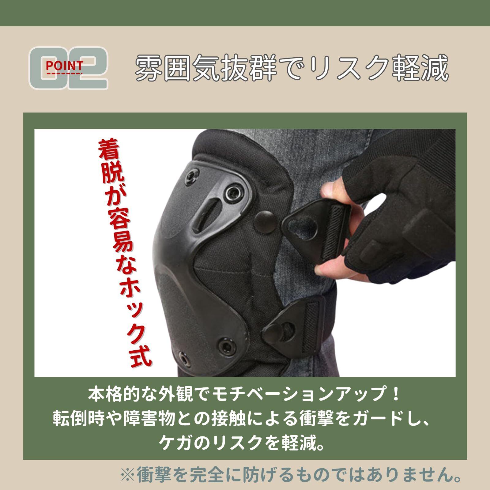 【多用途に対応】サバゲー以外にも、バイク、スケートボード、登山、DIY作業など、膝・肘の保護が必要なさまざまなシーンで活躍します。