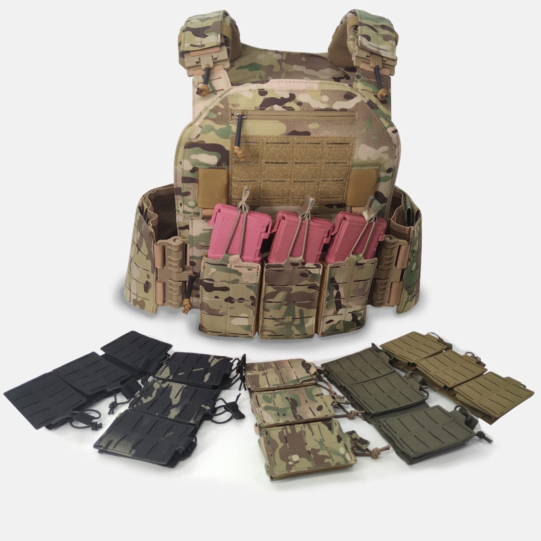 【MOLLE対応】MOLLEストラップが付いているのでMOLLE対応の各種ベストやプレートキャリアやベルトパッドやチェストリグなどに装着可能です、3連マガジンポーチの広いプラットフォームを活かす事で多様なギアを展開することができます。