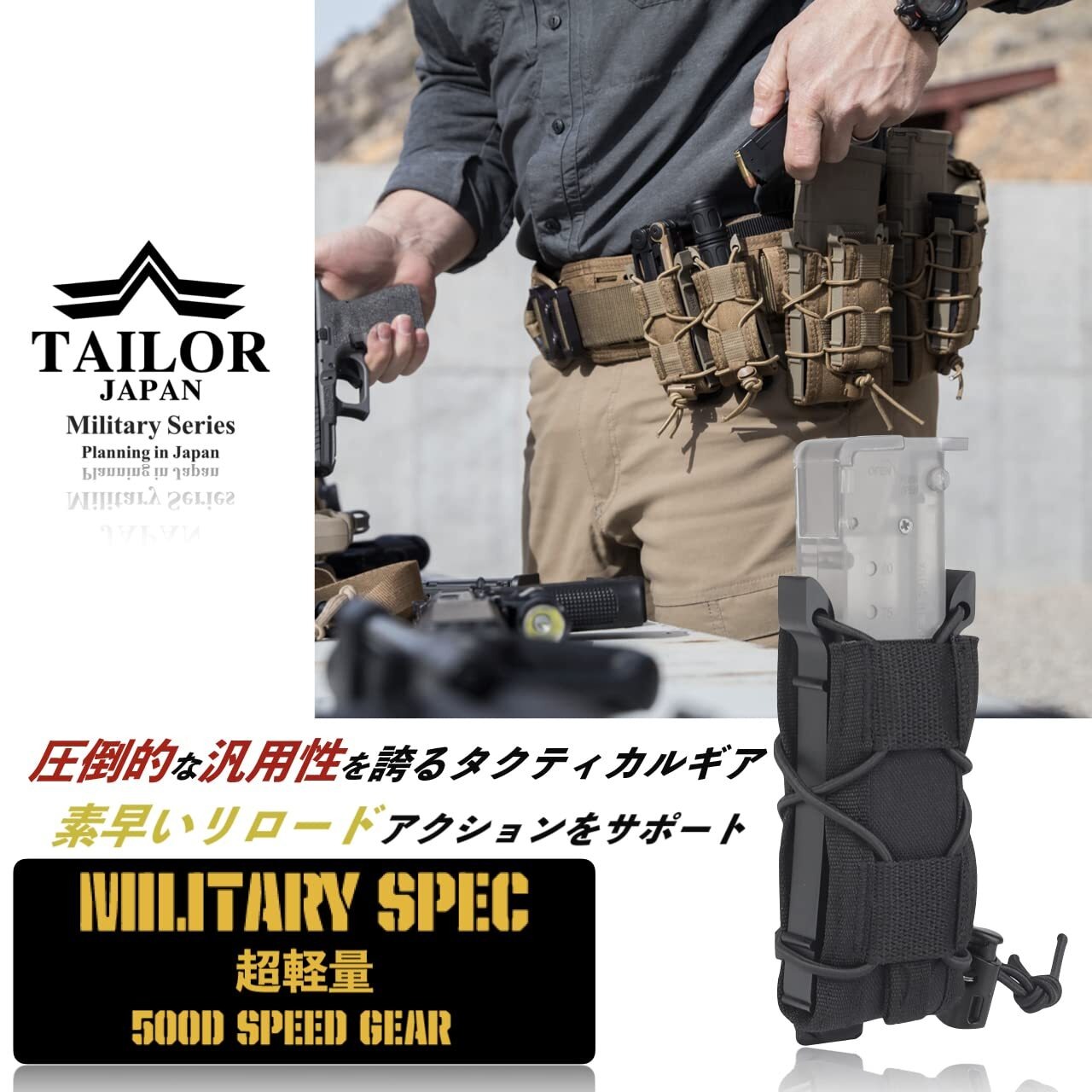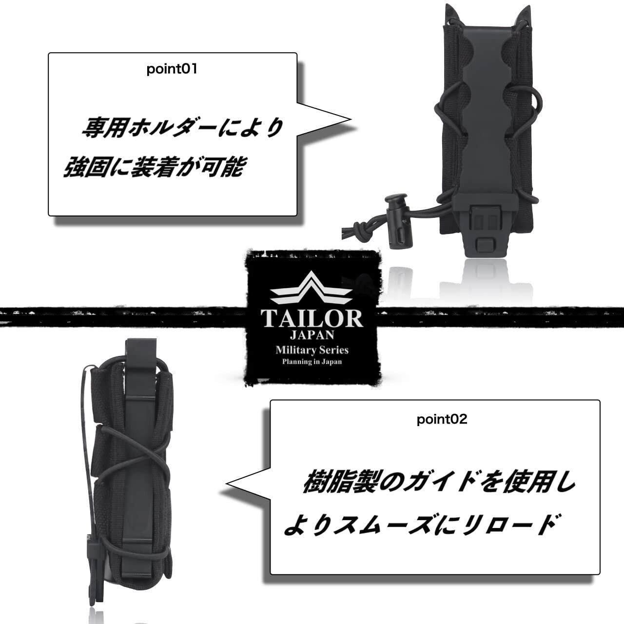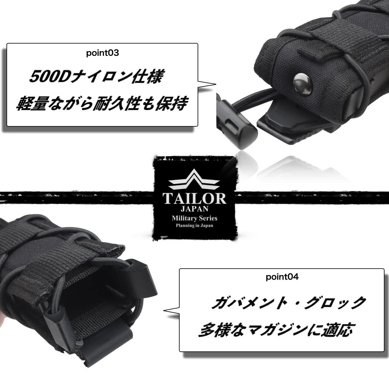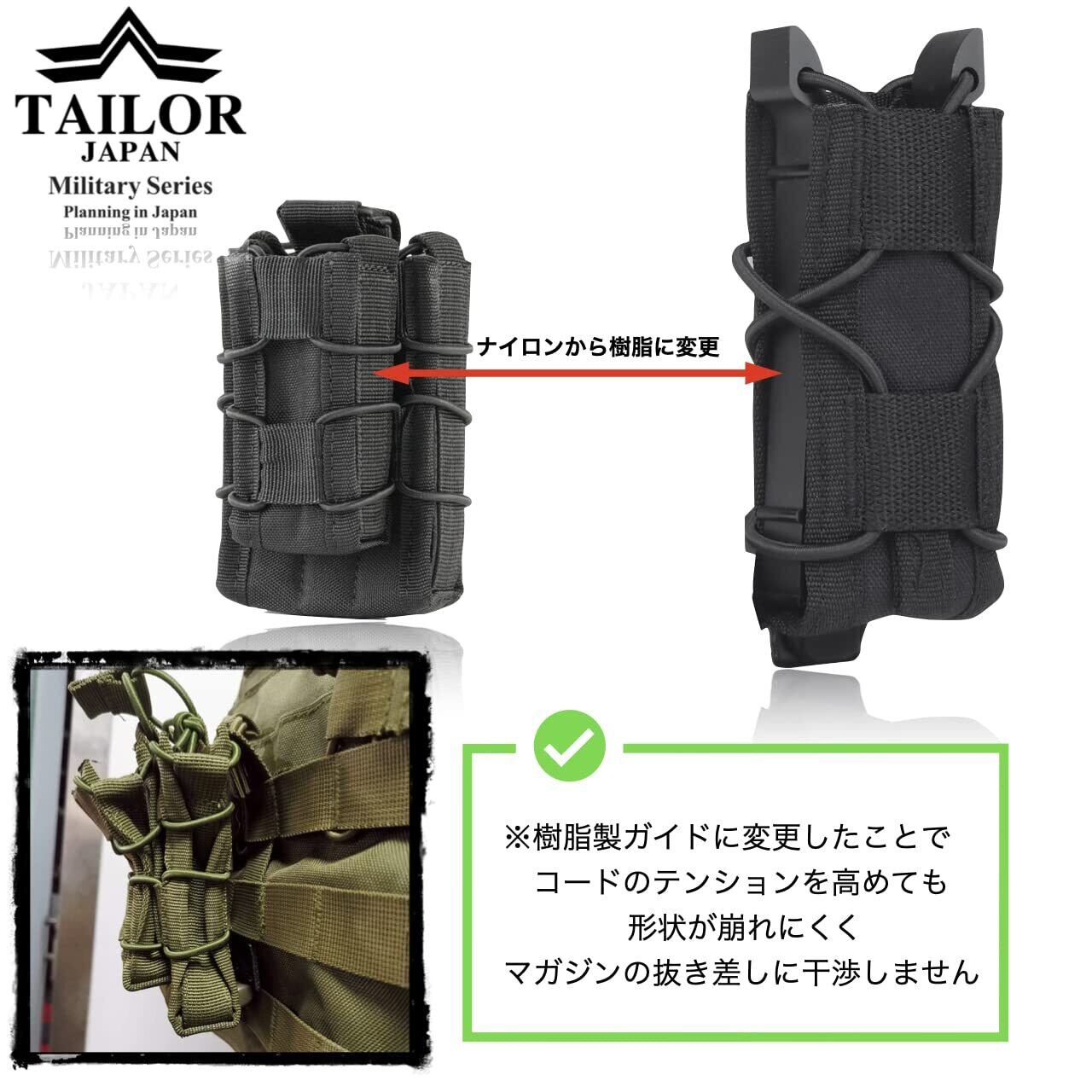 【TAILOR JAPAN】サバゲー ハンドガン マガジンポーチ オープントップ マグポーチ 9mm 実物ナイロン仕様 多種の形状に対応