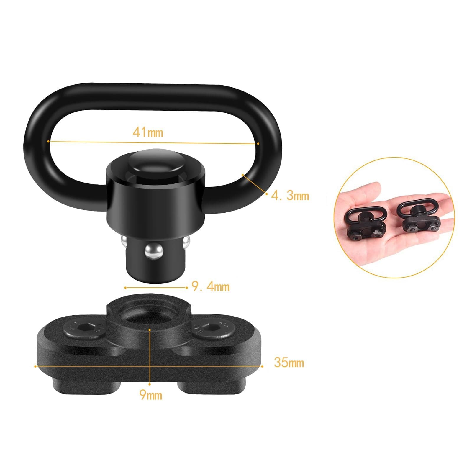 素材:スリングは高品質なスチール製で、軽量、低プロファイル、表面には精巧な黒の陽極酸化アルミニウム処理が施されています。