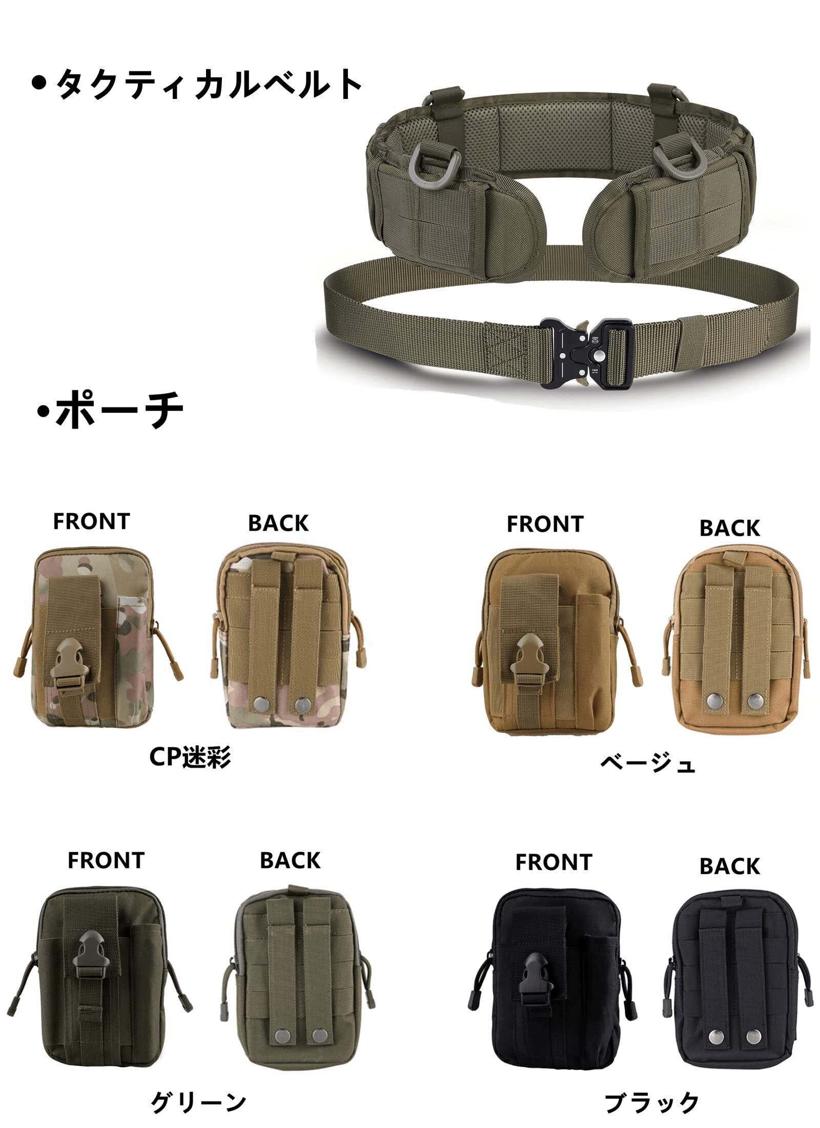[kuroobaa] タクティカルベルト サバゲー ベルト ポーチ 作業用 タクティカルベルト タクティカルベルトパッド タクティカルポーチ 3点セット