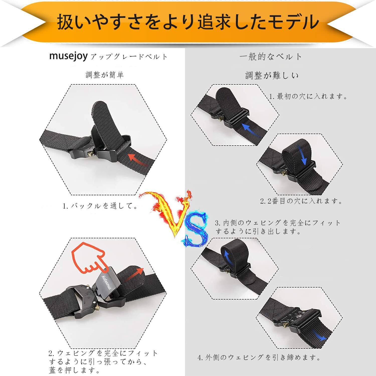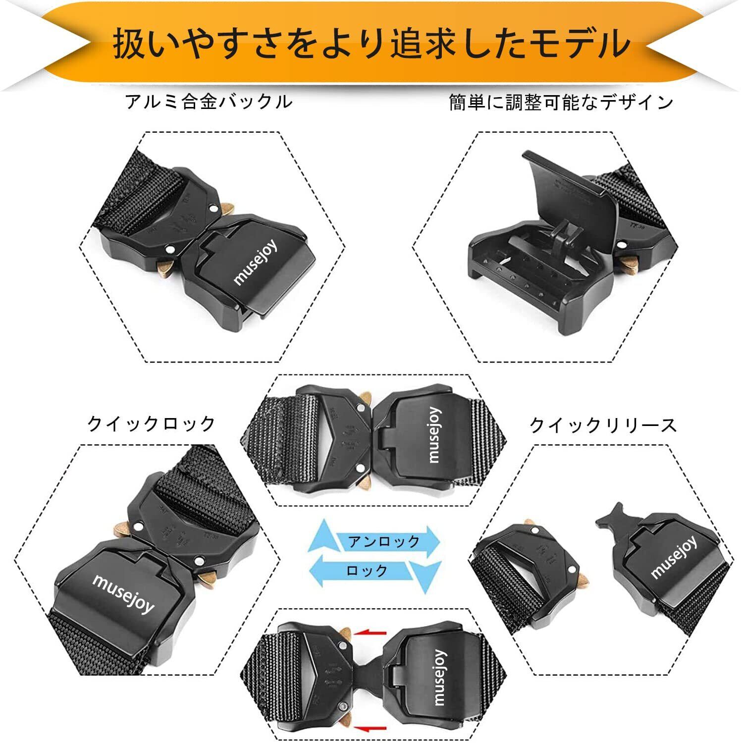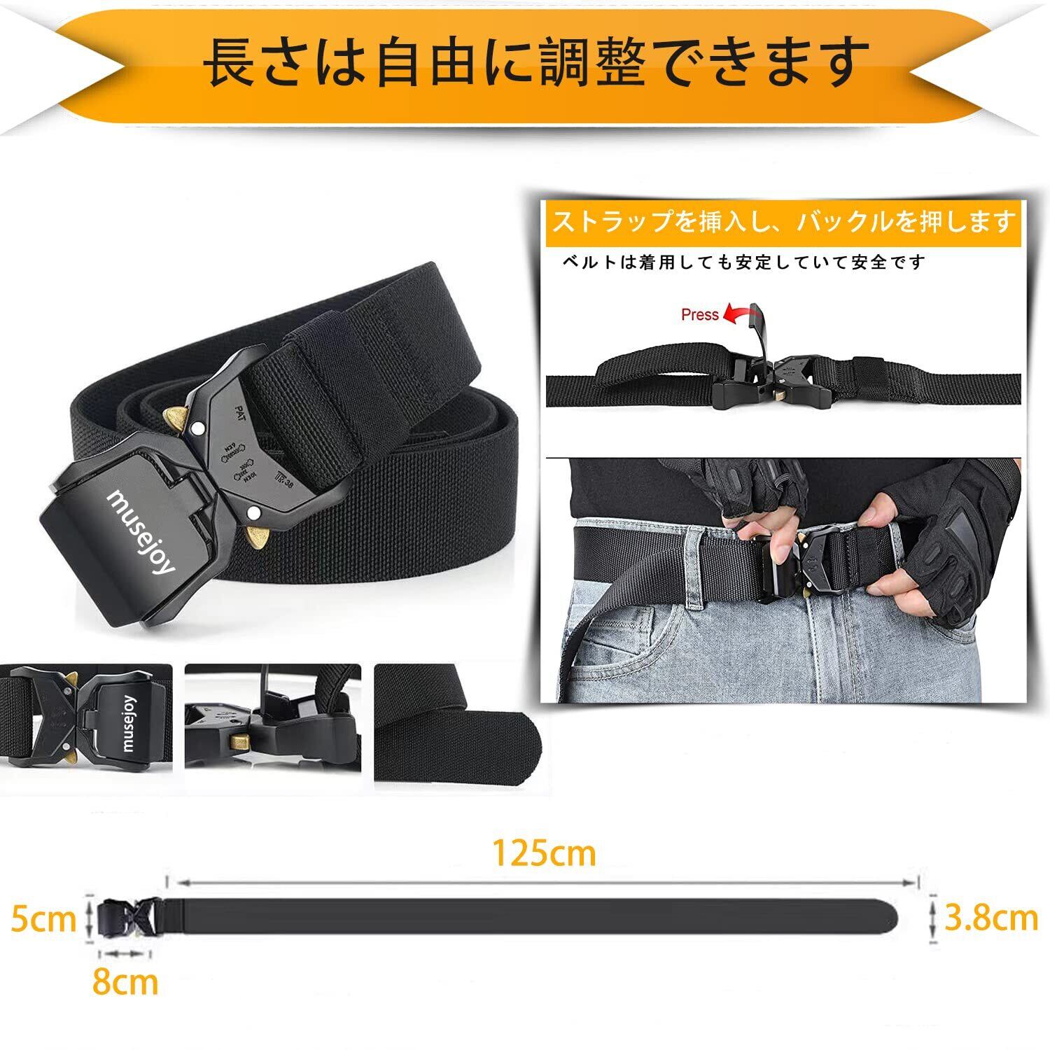 Musejoy タクティカルベルト 作業用ベルト メンズ ベルト カジュアル ワンタッチベルト サバゲーベルト サバイバルゲーム 装備 ガンベルト ミリタリー 登山 自衛 隊 運動 軽量 アウトドアDIY