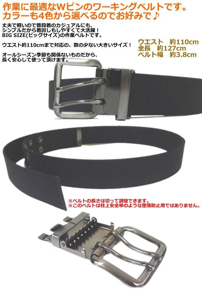 ダブルピン 作業用ワーキングベルト(wp-40) 幅3.8cm 4色/ウエスト110cmまで