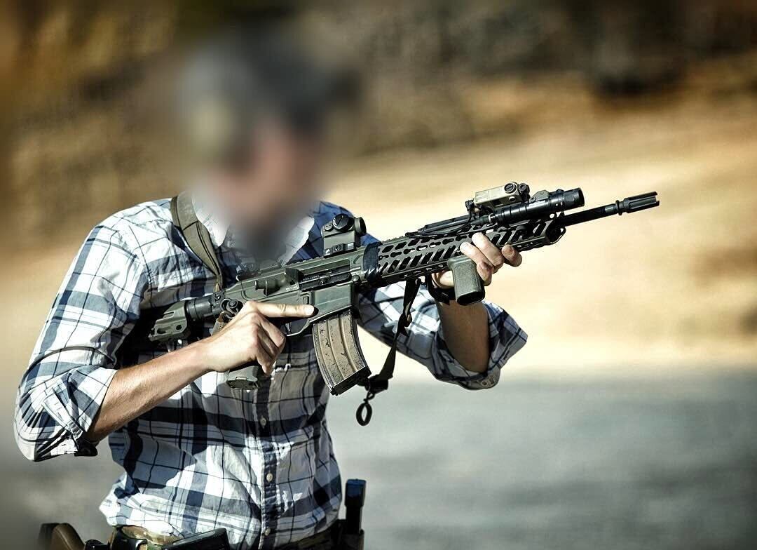 火器をしっかりした固定状態から素早く射撃姿勢に移行可能