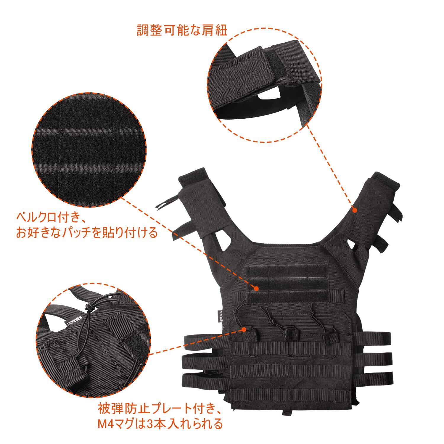 Beneges 軽量 サバゲー ベスト Molle設計 タクティカルベスト 多機能 調節可能 サバイバルゲーム 収納力
