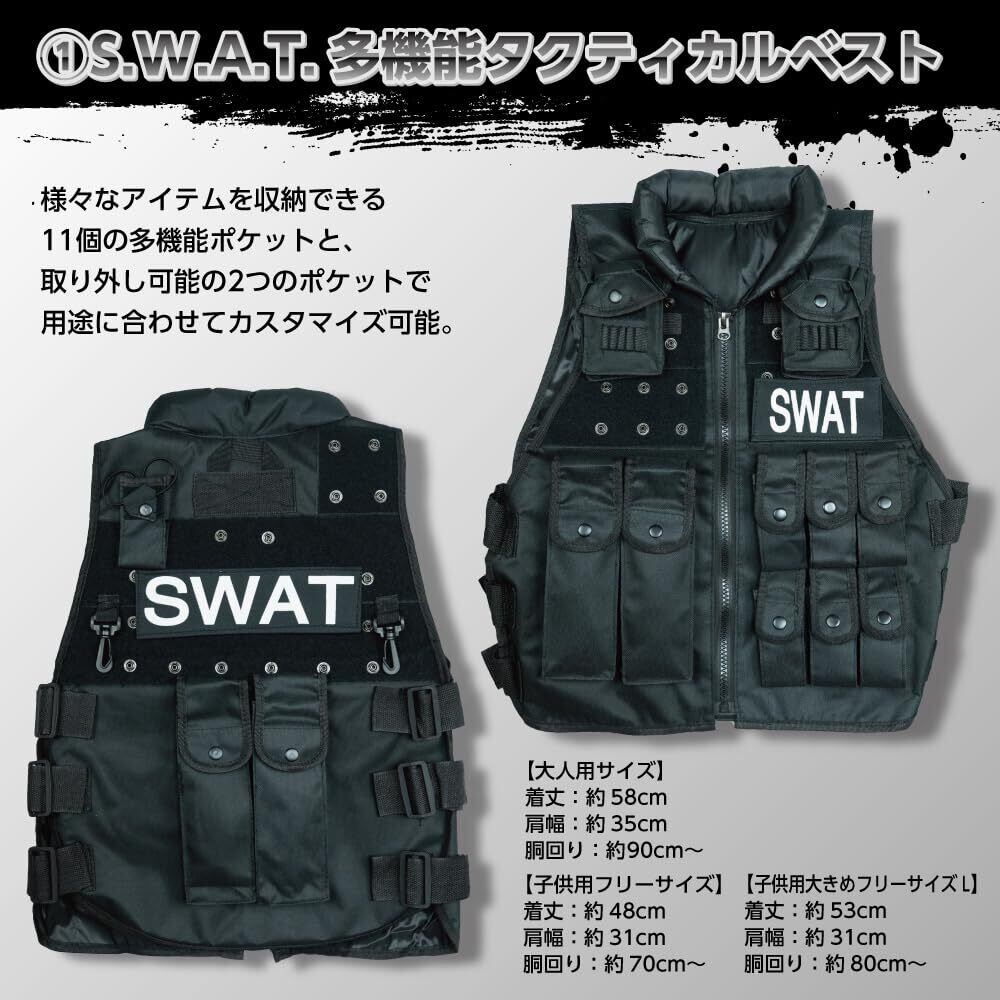 サバゲー、ハロウィン、イベント、スポーツ用途に最適な3点セット(SWATベスト、SWATキャップ、グローブ)もしくはSWATベスト単品商品です。