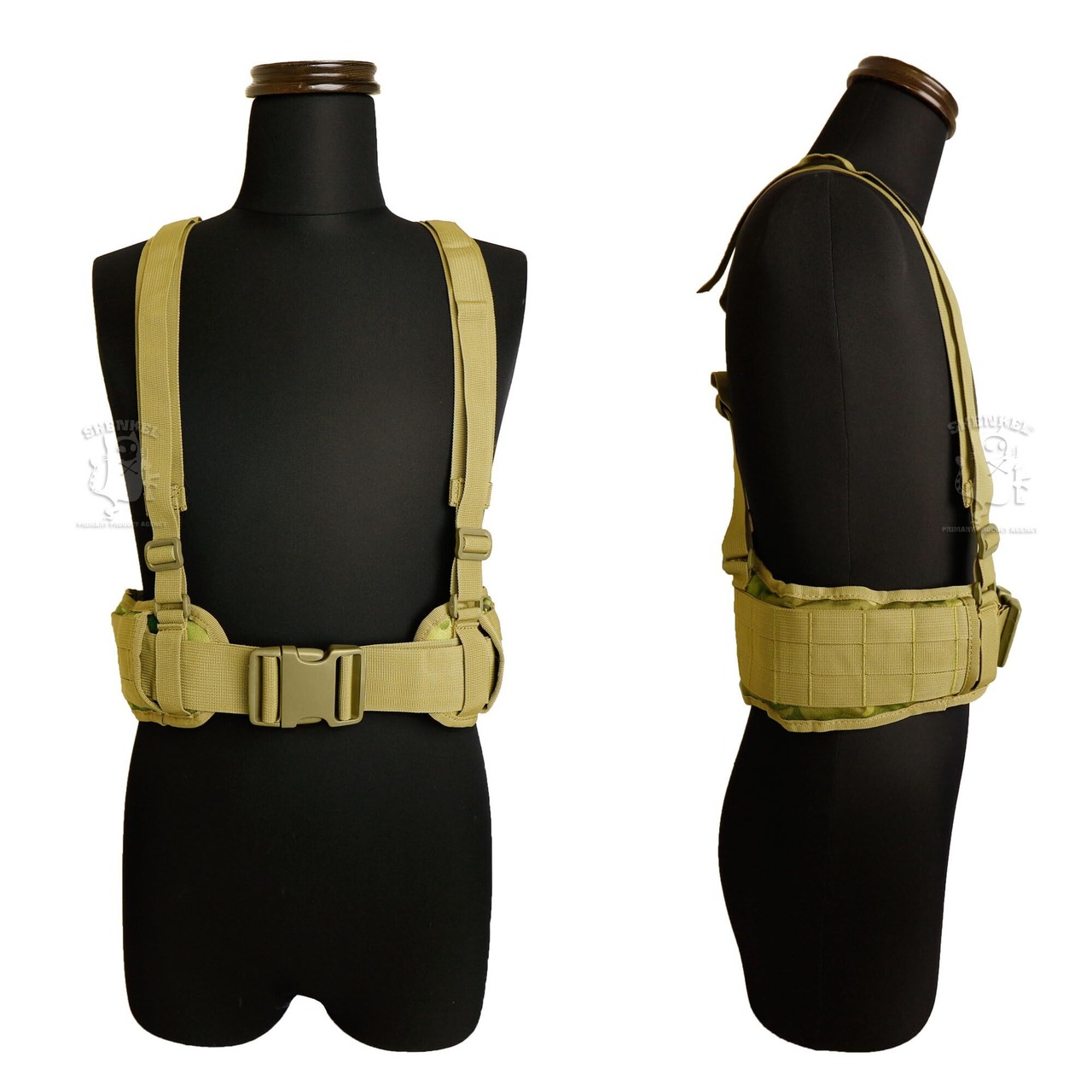 3段のMOLLEが配置されたサスペンダー付きタクティカルベルトです。