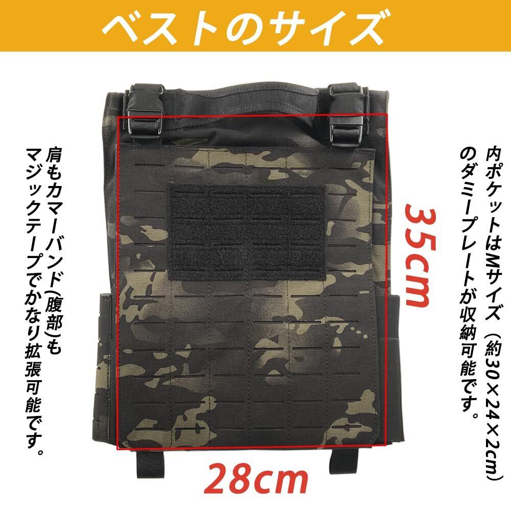 【タクティカルベストのサイズ】M~4XLまで対応(マジックテープで調整可)・肩寸:20~37㎝まで調整可・高さ:45~60㎝・横幅:85~125㎝・重量:約1.5㎏。プレキャリの全てのプレートが着脱可。このタクティカルベストは、EVAメッシュパッドが付属しています。本製品には3連マガジンは含まれておりませんが、当店では3連マグポーチを販売しております。