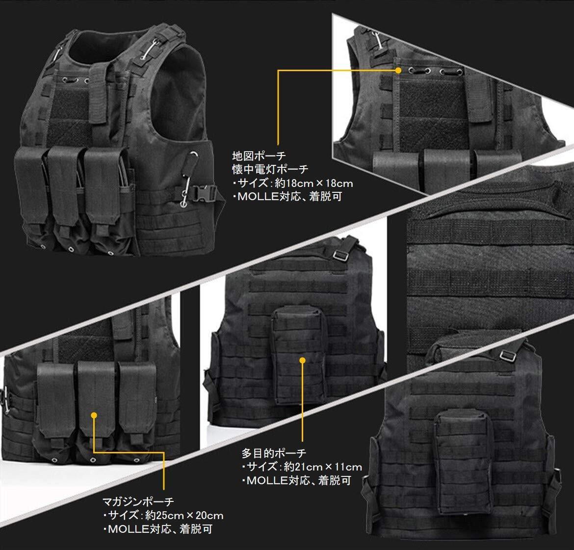 地図ポーチ(懐中電灯ポーチを含む)*1、3連マガジンポーチ*1、多目的ポーチ*1 。全てのポーチが着脱可。