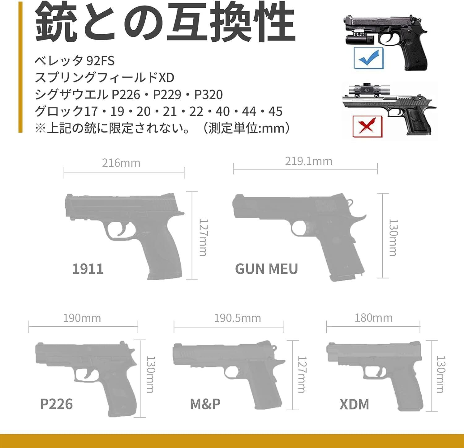 自由調節:2本のベロクロでハンドガンを固定でき、微調整できるのでほとんどの型に合わせやすい。