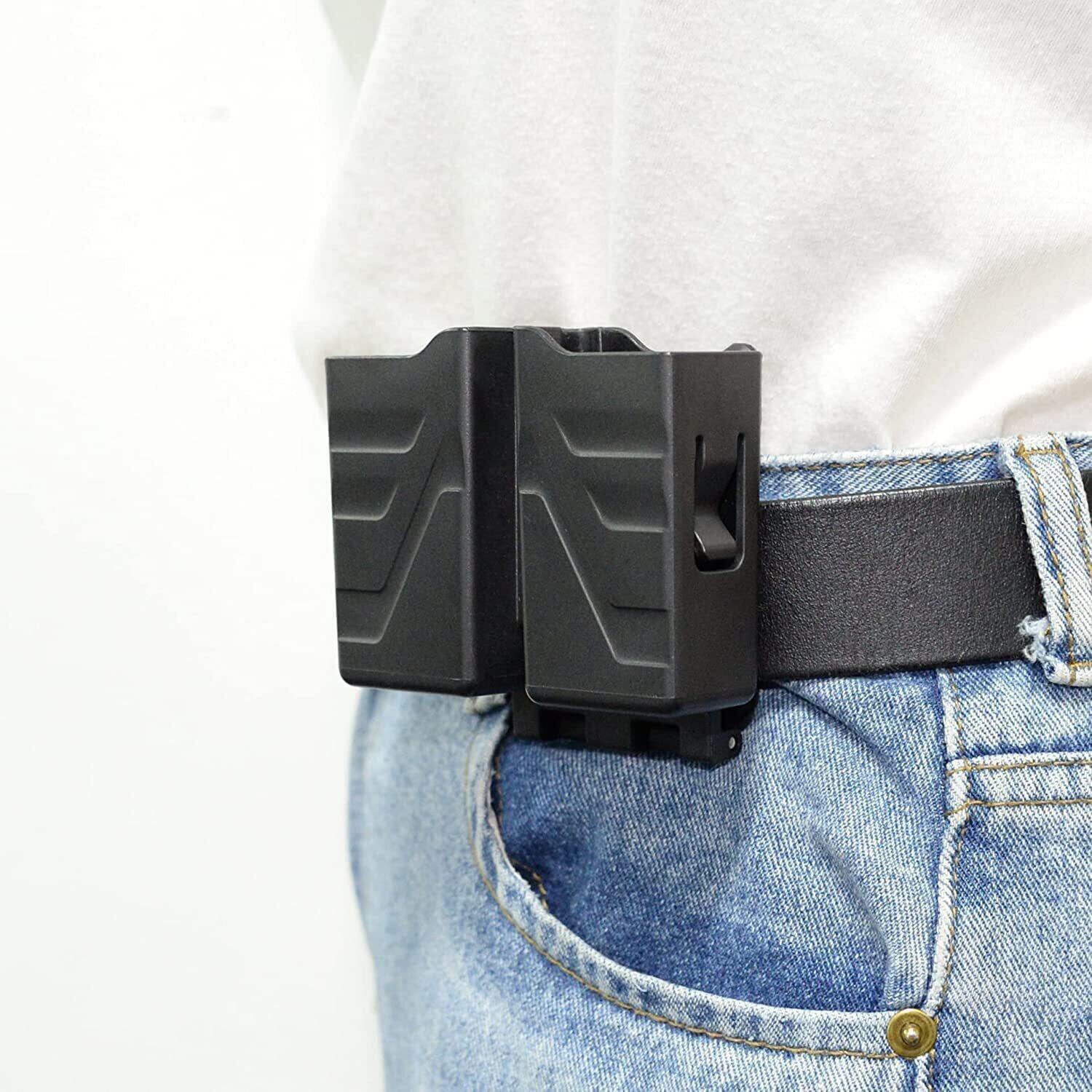 ダブルマガジンホルスター 9mm/.40デュアルスタックマガジンに対応したユニバーサルマガジンホルダー グロック/S&W/ルーガー/シグザウエル/タウルス/CZ/ワルサー用ベルトクリップ付きマガジンポーチ アップグレード 固体ポリマー材料