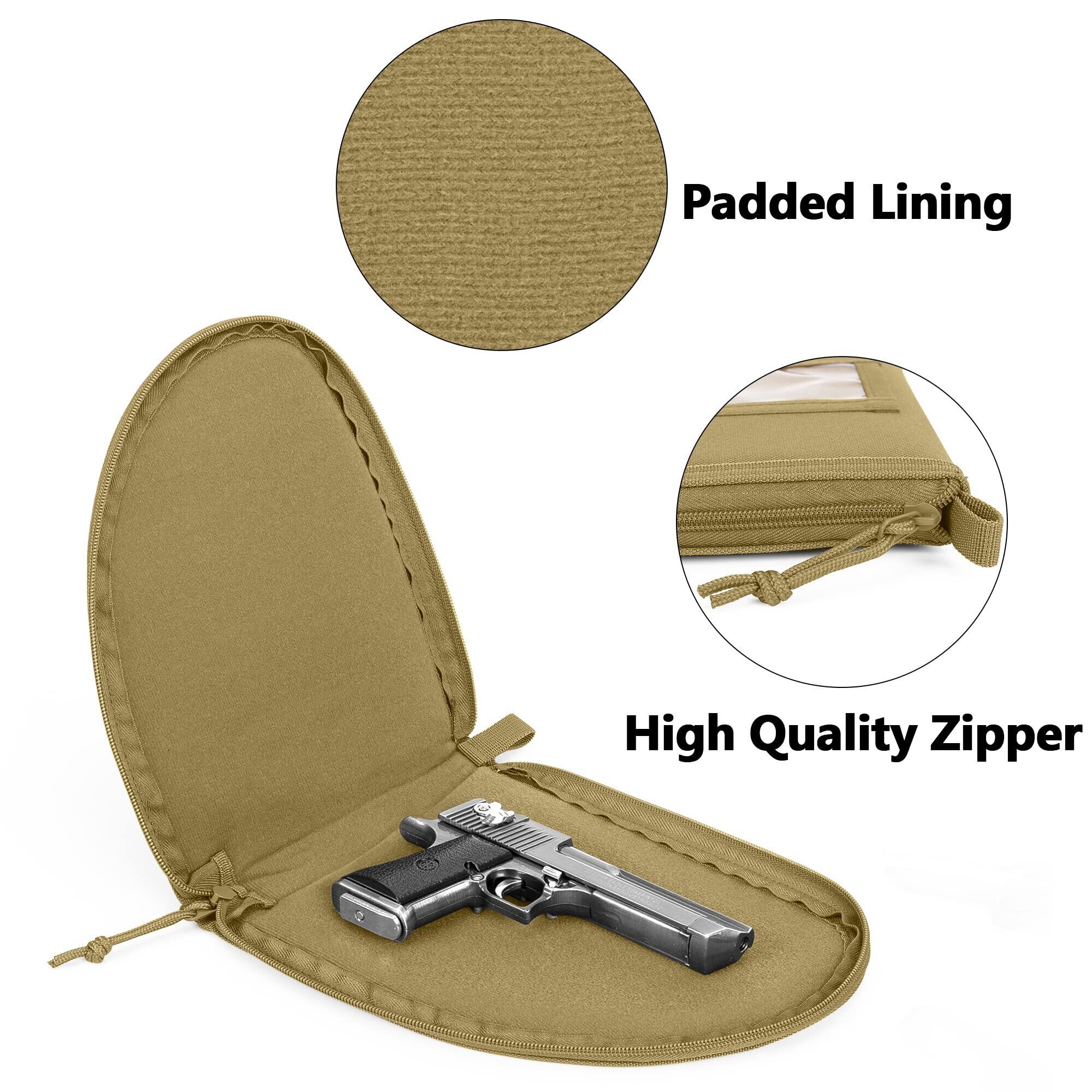 簡単なアクセス:このピストルケースはピストルにすばやく簡単にアクセスできるように、フルレングスの特大ジッパーを備えています。IDカードウィンドウはユーザー識別用に設計されています