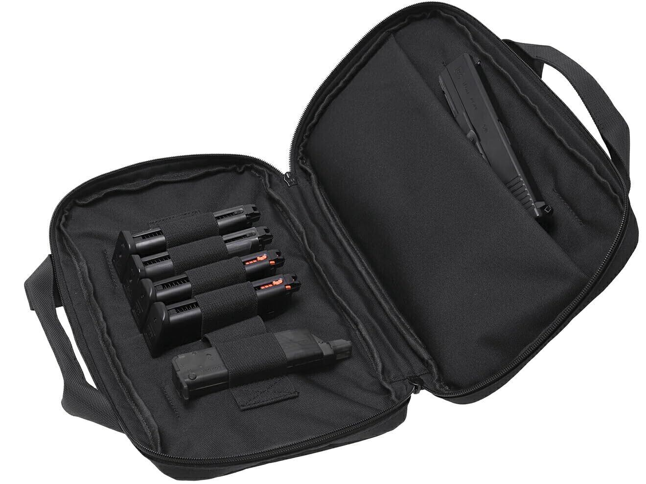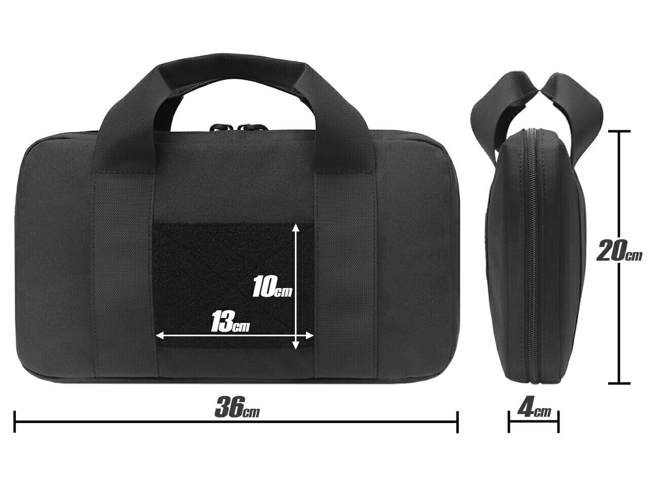 長手方向が広くなっており、約36cmのスペースを確保しています。(ポケット側は2cm前後狭まります)G17ですと10cm強のサプレッサーを装着していても収納が可能になっています。