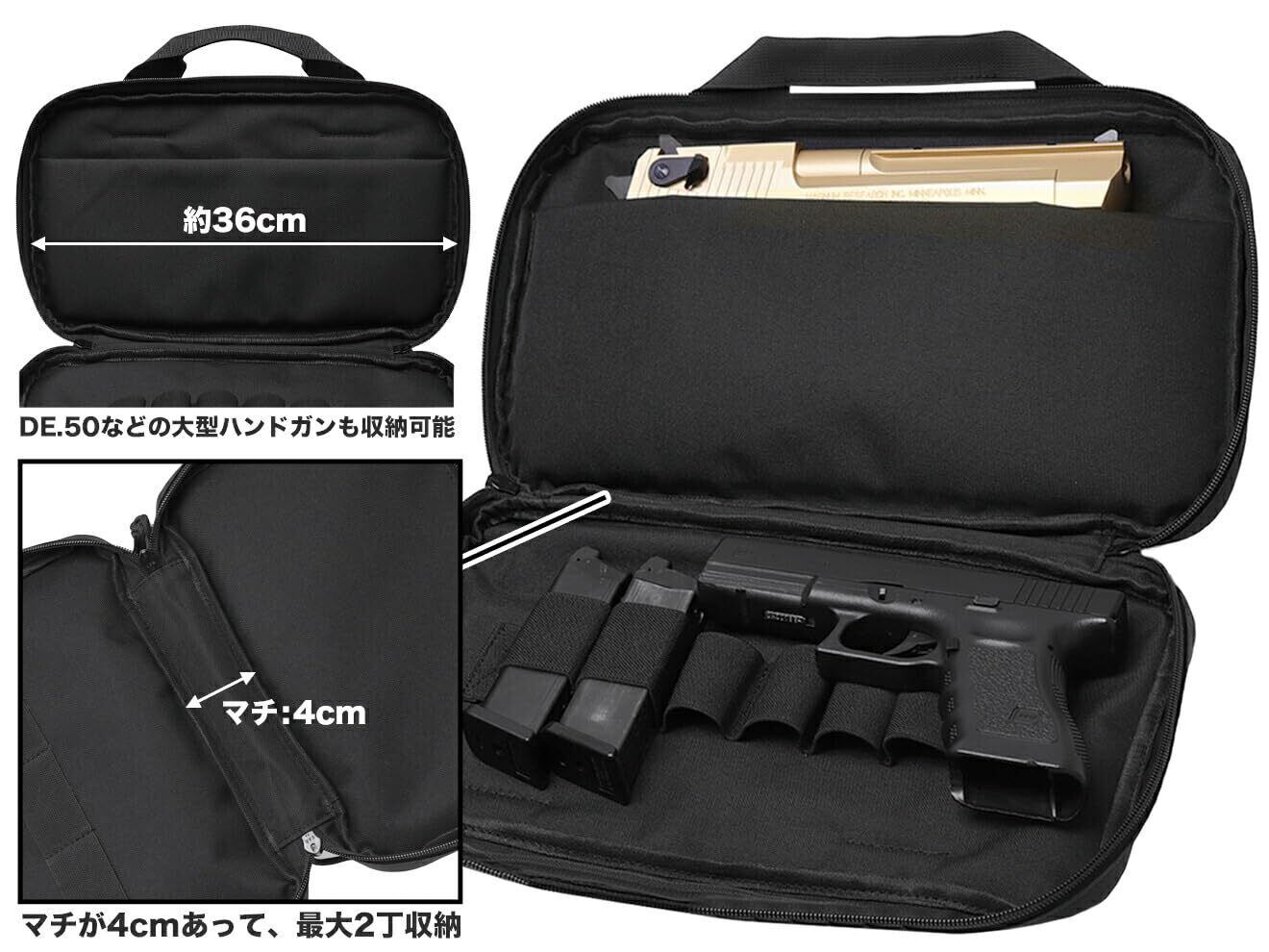 MILITARY BASE ナイロン ハンドガンケース HG 36cmです。ハイキャパ、GLOCK、M9などミドルサイズハンドガンにピッタリなソフトガンケースです。