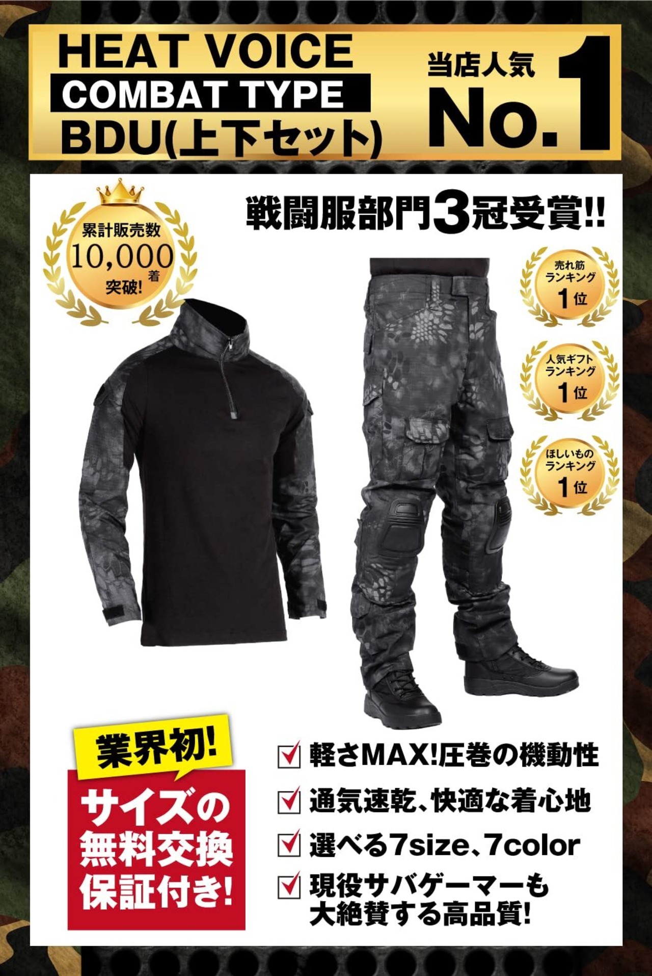 【人気商品】[HEAT VOICE] サバゲー 服 迷彩服 上下セット 装備 bdu 戦闘服 コンバットパンツ シャツ メンズ レディース ウェア 日本人サイズ エルボーパッド ニーパッド付き(XXL, タイフォン(黑)) | wakuwakuland