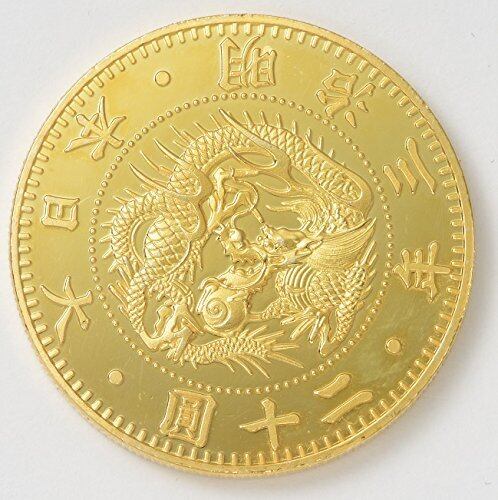 復刻版 近代銭 明治三年銘 旧二十圓 金貨 金鍍金 プルーフ調仕上げ