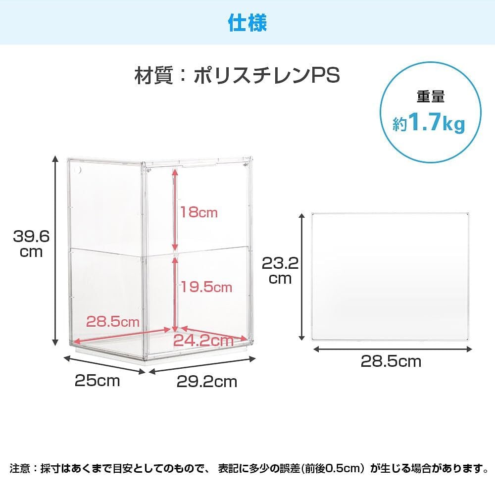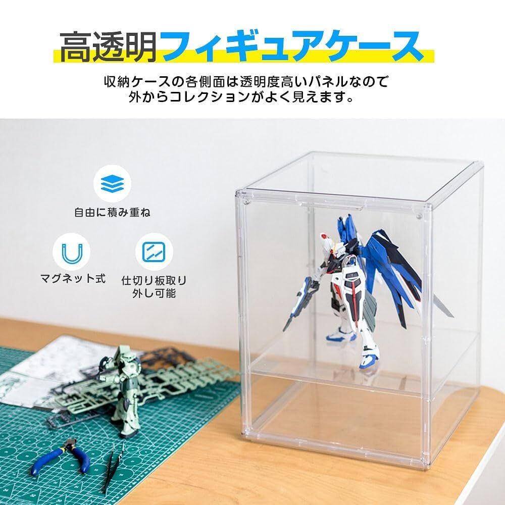 八番屋 フィギュアケース 収納 透明展示ケース マグネット式扉 コレクションケース 積み重ね可能 幅29.2×奥25×高さ40cm クリア 一つ