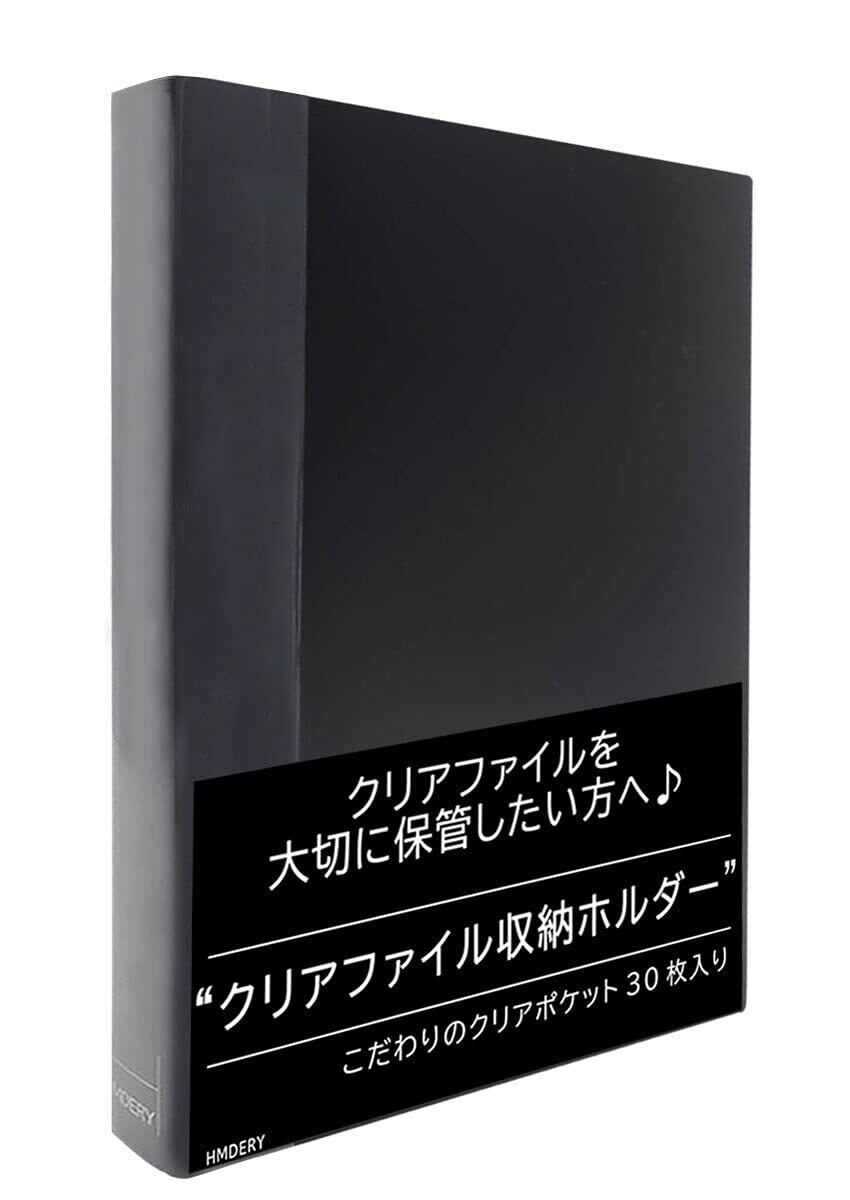 ハムデリー 差し替え式 クリアファイル収納ホルダー/ポケット30枚入り (カラー:ブラック) 度/大容量/厚みと質感 ホルダー クリアポケット ポケット クリア ファイル リフィル 収納 差し替え式 30穴 2穴 4穴 入 a4 クリアファイル 人気 バインダー
