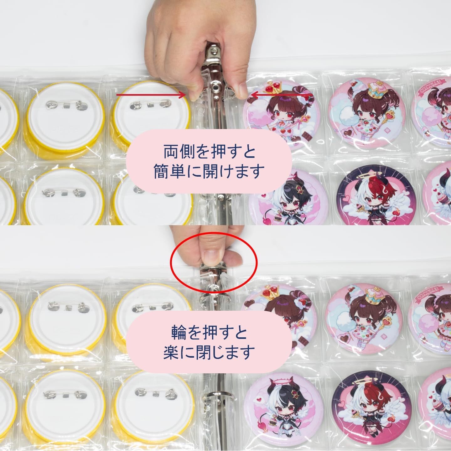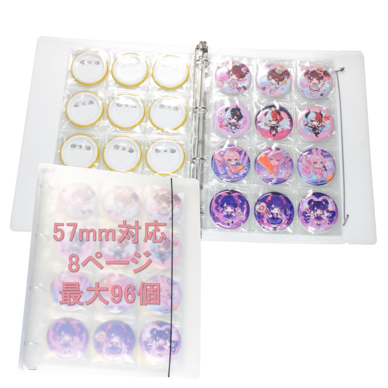 缶バッジ 収納ファイル 57mm 缶バッジカバー 最大96枚収納可能 大容量 落下防止フタ付き 耐久性