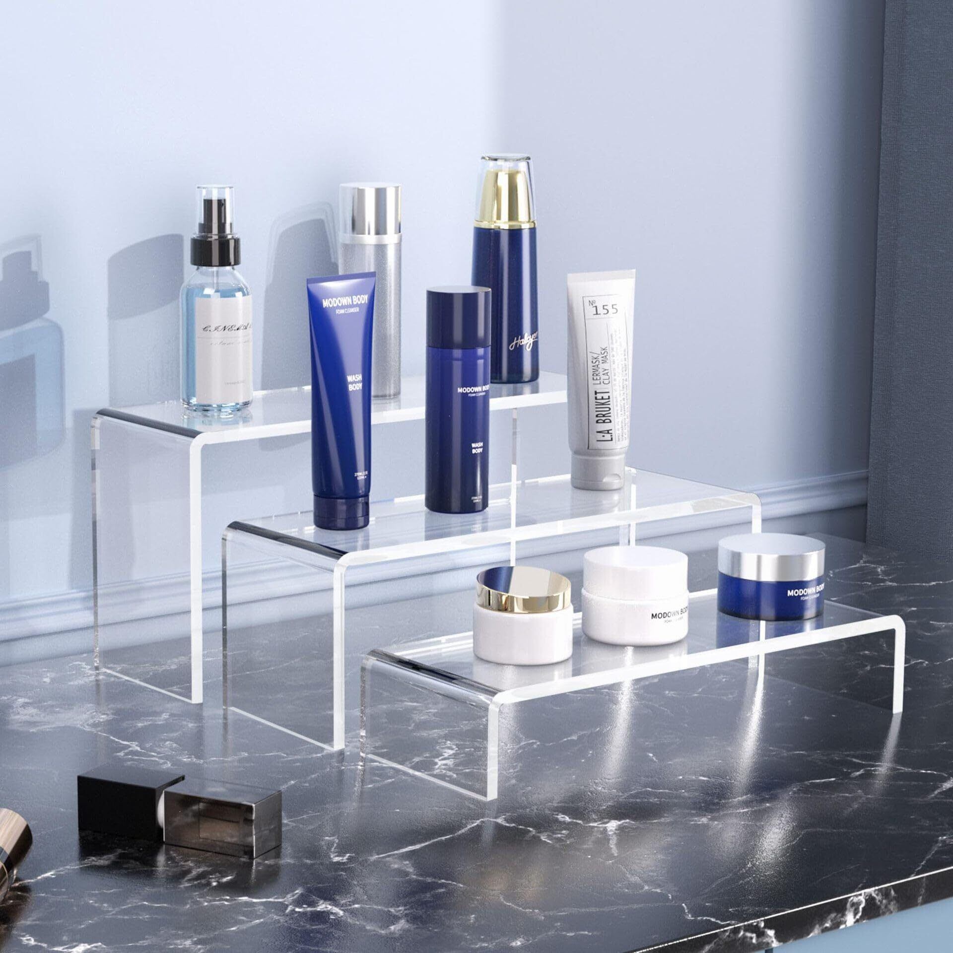 【自由な収納が可能】「コの字型」デザインにより、小物の配置方法が自由自在。横置きや倒して使用することで、棚の仕切りやカバーとしても活用できます。時計、コスメ、フィギュアなどの小物をおしゃれにディスプレイでき、高さの異なるアクリルスタンドを使って立体感のある陳列が可能です。お店での商品展示や販促にも最適です。