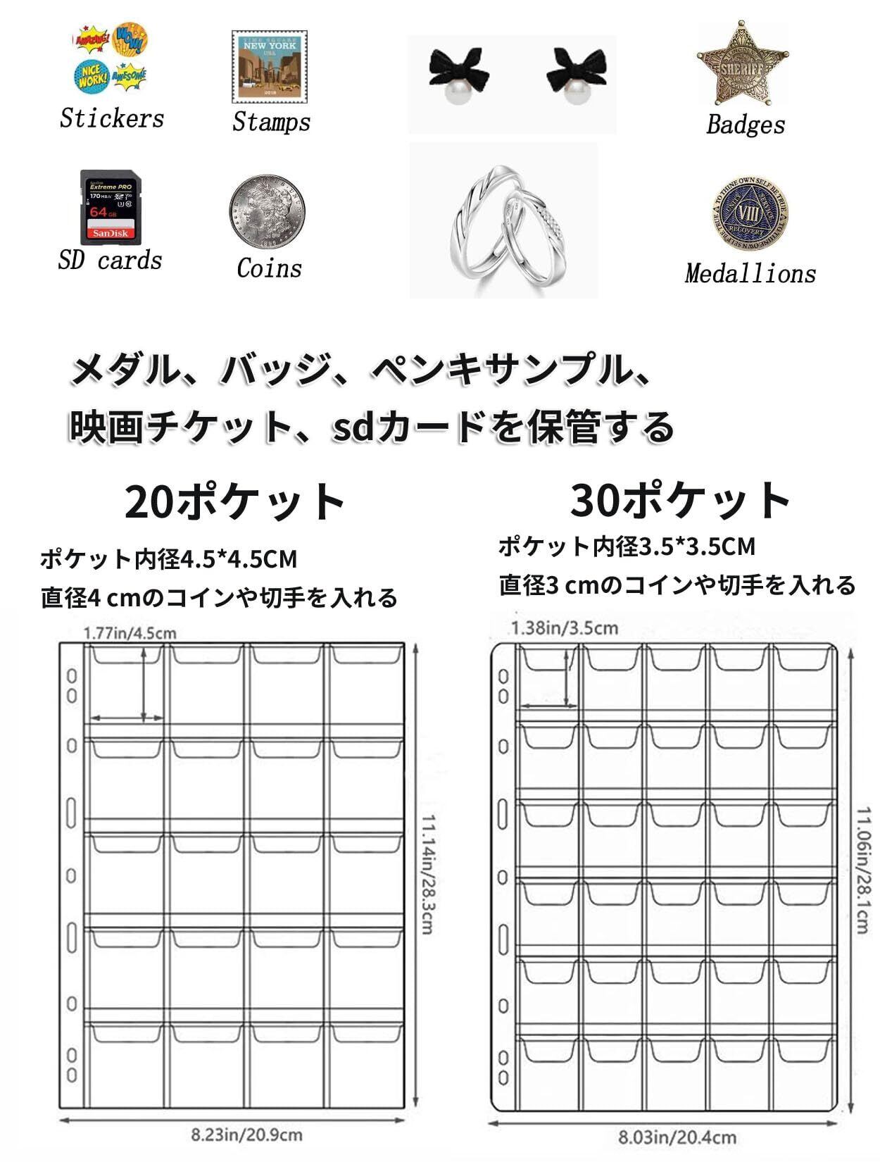 【2022最新】コインアルバムページ 5枚セット切手アルバムミニ写真 アルバム ピンバッジ メダルコイン収納 収集 保存用 コレクションA4サイズCoin Collecting Pagesお金ポケット 記念コインポケットホルダー メダル 収納ケース標準9穴透明 (30ポケット-直径3cm対応) | wakuwakuland
