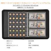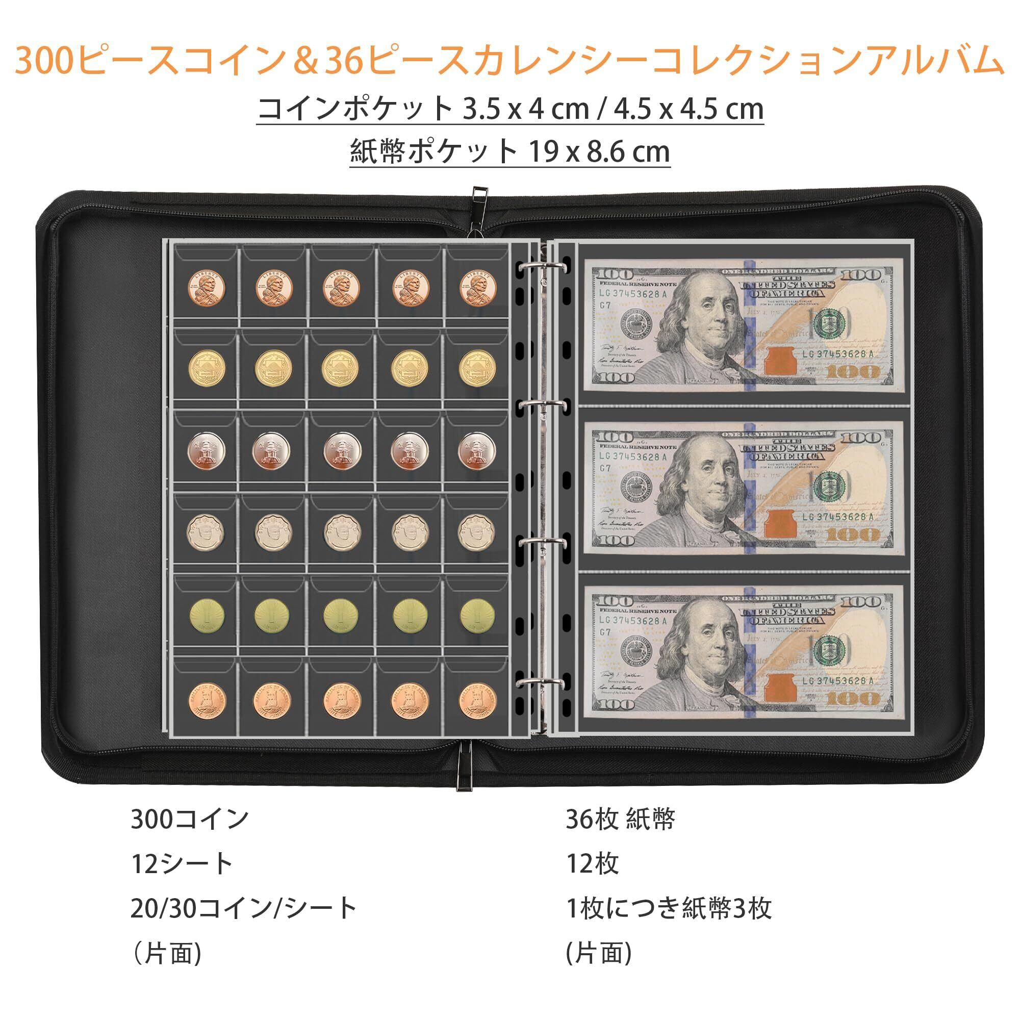【在庫セール】コレクター向けコインコレクションブックホルダー、300ポケットの耐火コイン収集アルバムと36スリーブのマネー収納ケース、コイン通貨収集用品、紙幣、ペニー、クォーター、切手用 | wakuwakuland