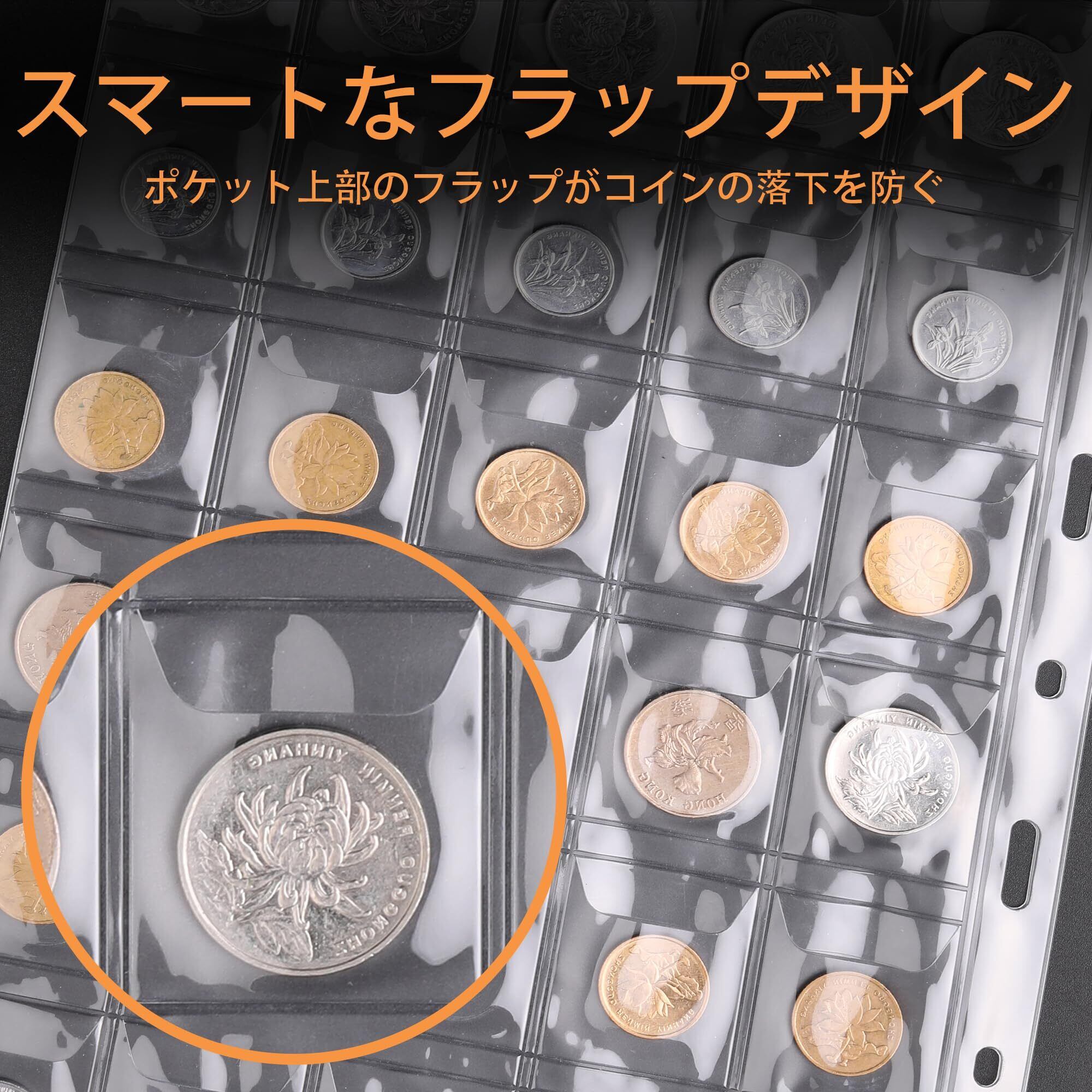 スマートポケットデザイン:コイン収納アルバムは、コイン、紙幣、紙幣を保管・保護するのに最適紙幣や切手収集に。ポケット上部のフラップがコインの落下を防ぎます。コインと紙幣を分けて収納できるポケットは、コイン同士が擦れ合うのを防ぎ、コインや紙幣を簡単に入れて整理整頓できます。